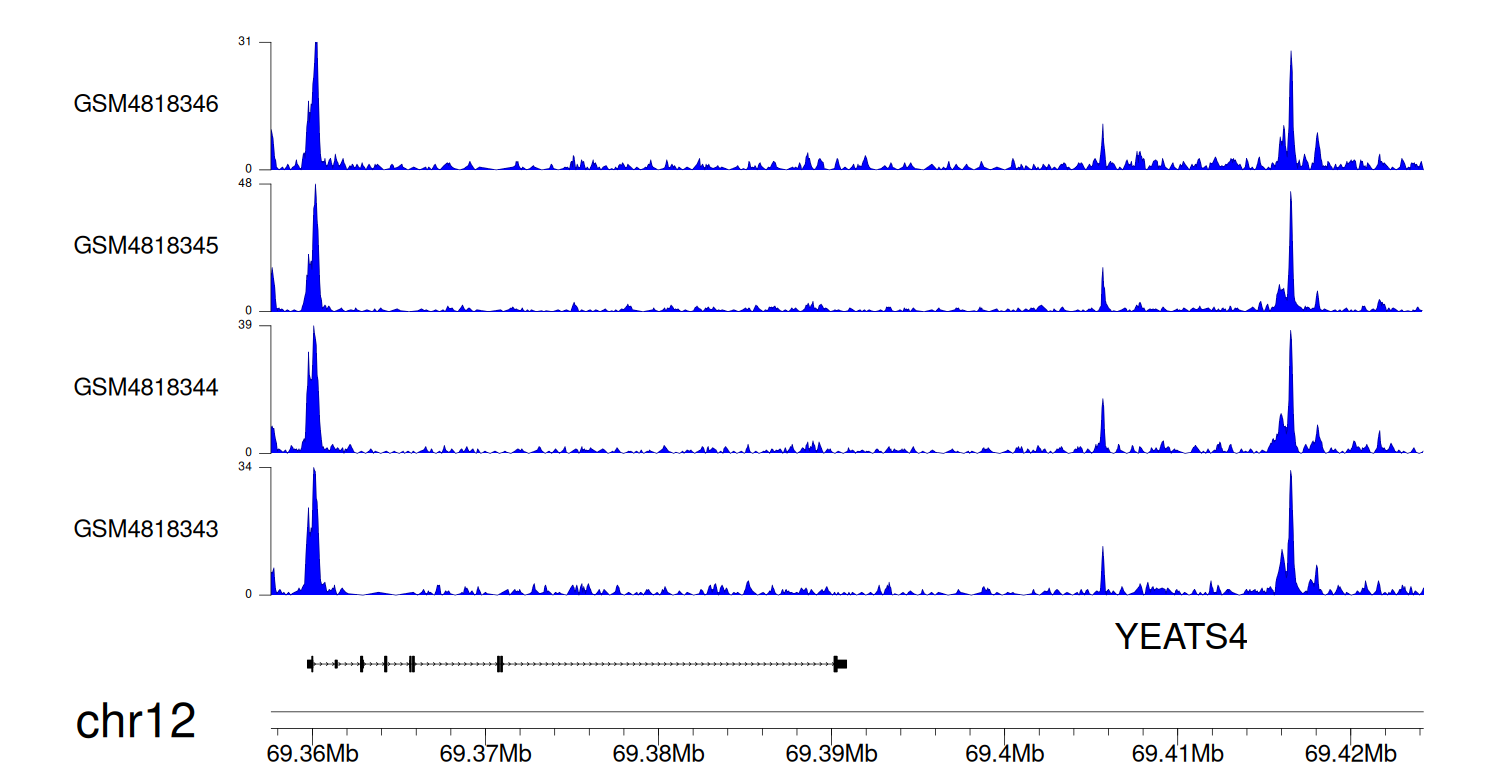 > Dataset: GSE131257 - YEATS4 peak across samples