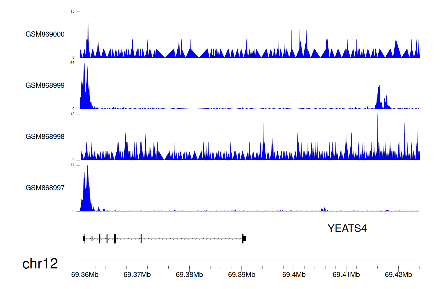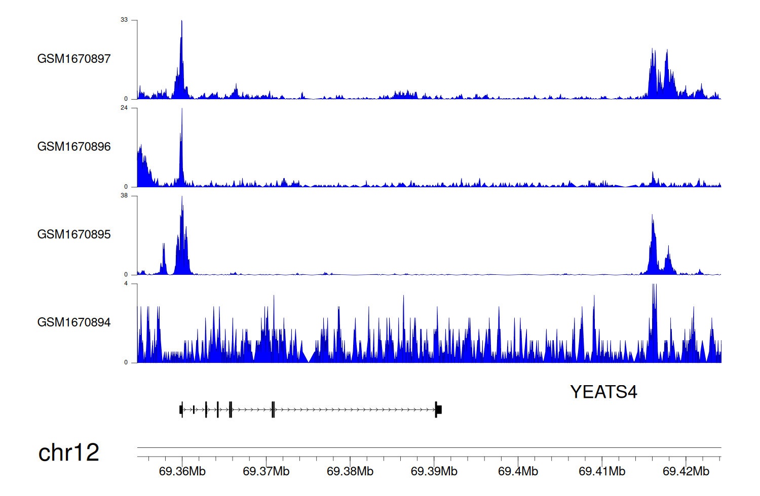 > Dataset: GSE68402 - YEATS4 peak across samples