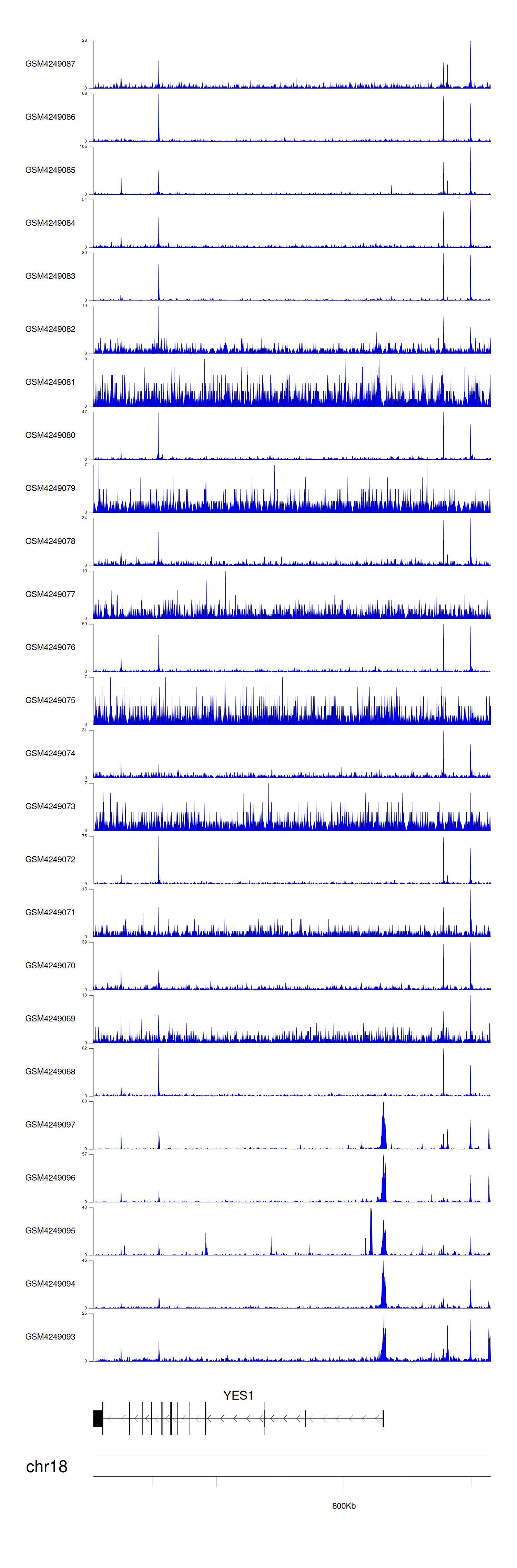 > Dataset: GSE143026 - YES1 peak across samples