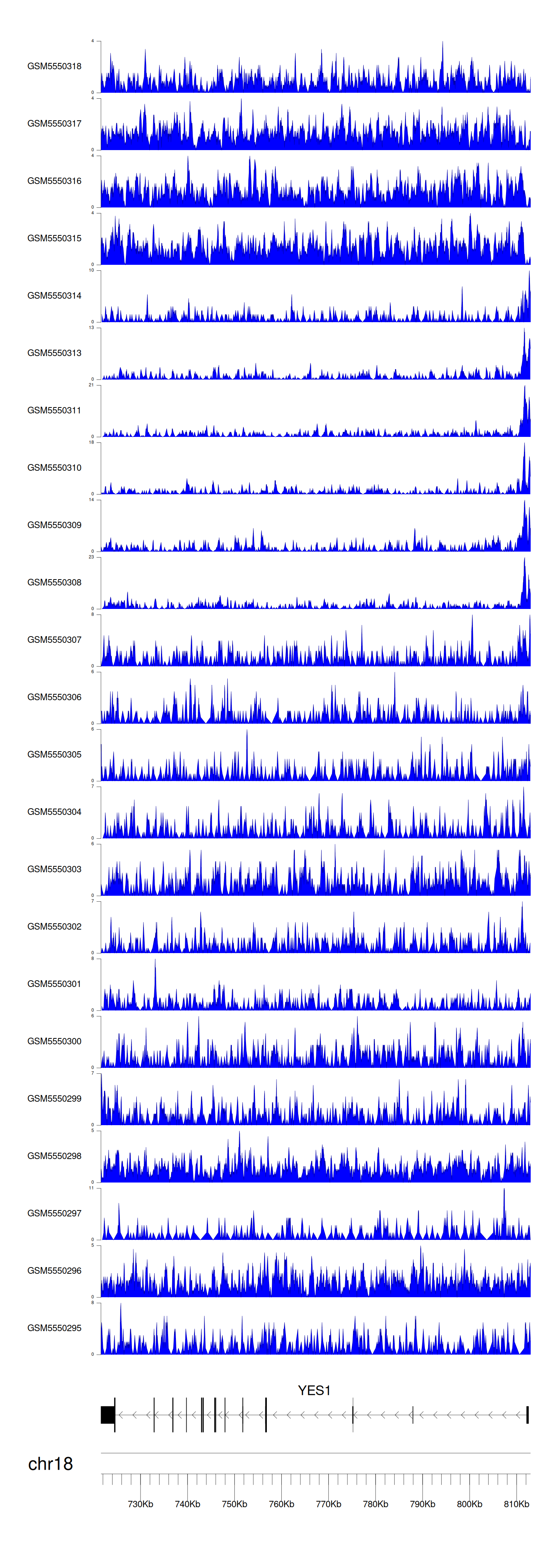 > Dataset: GSE183048 - YES1 peak across samples