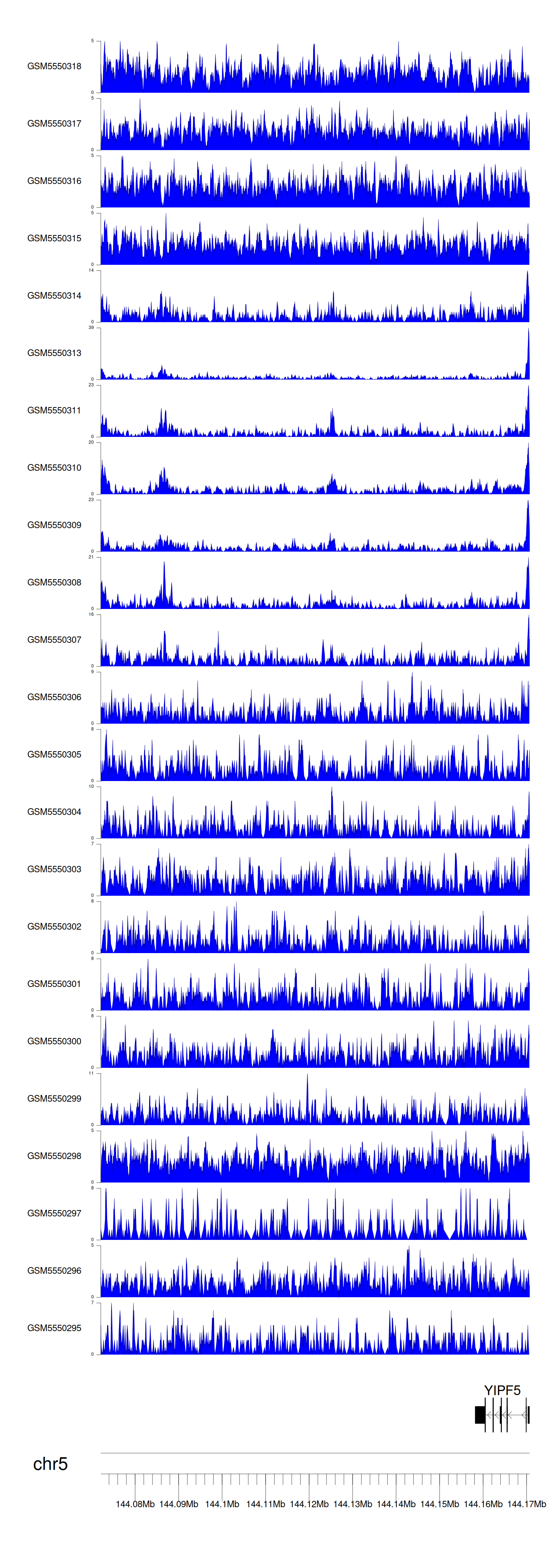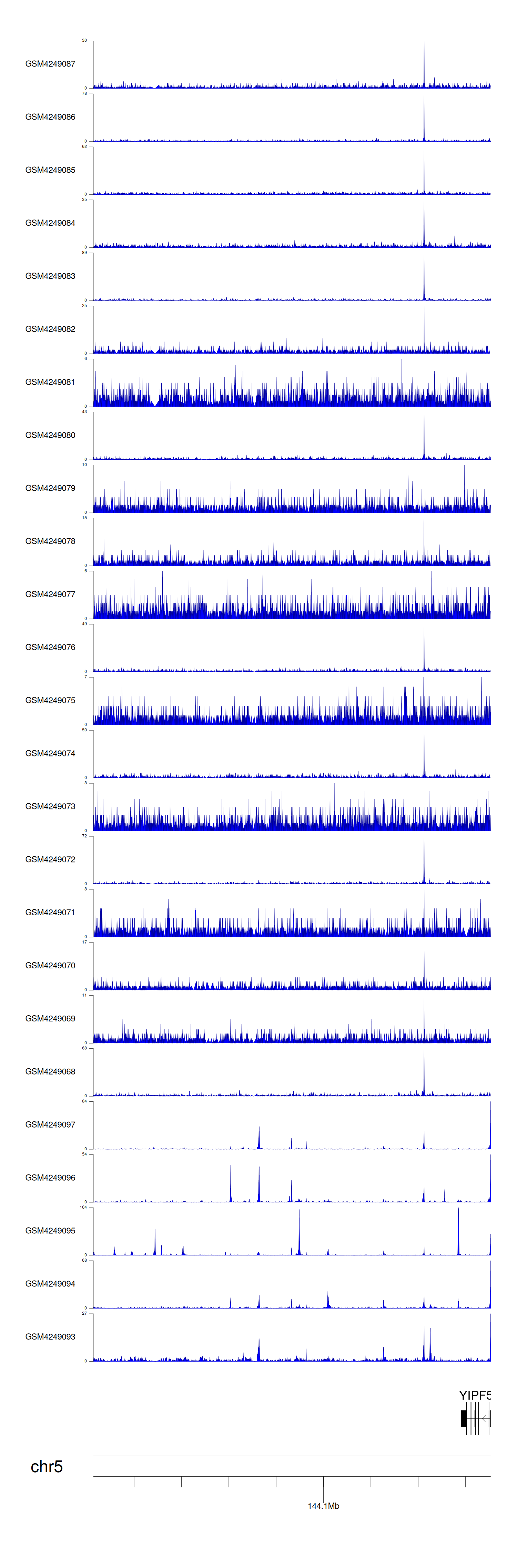 > Dataset: GSE143026 - YIPF5 peak across samples