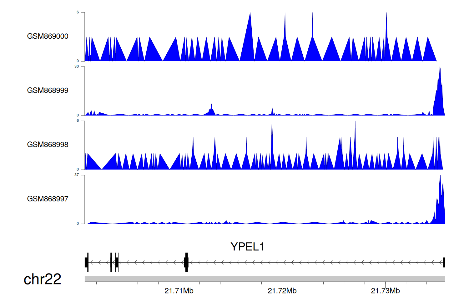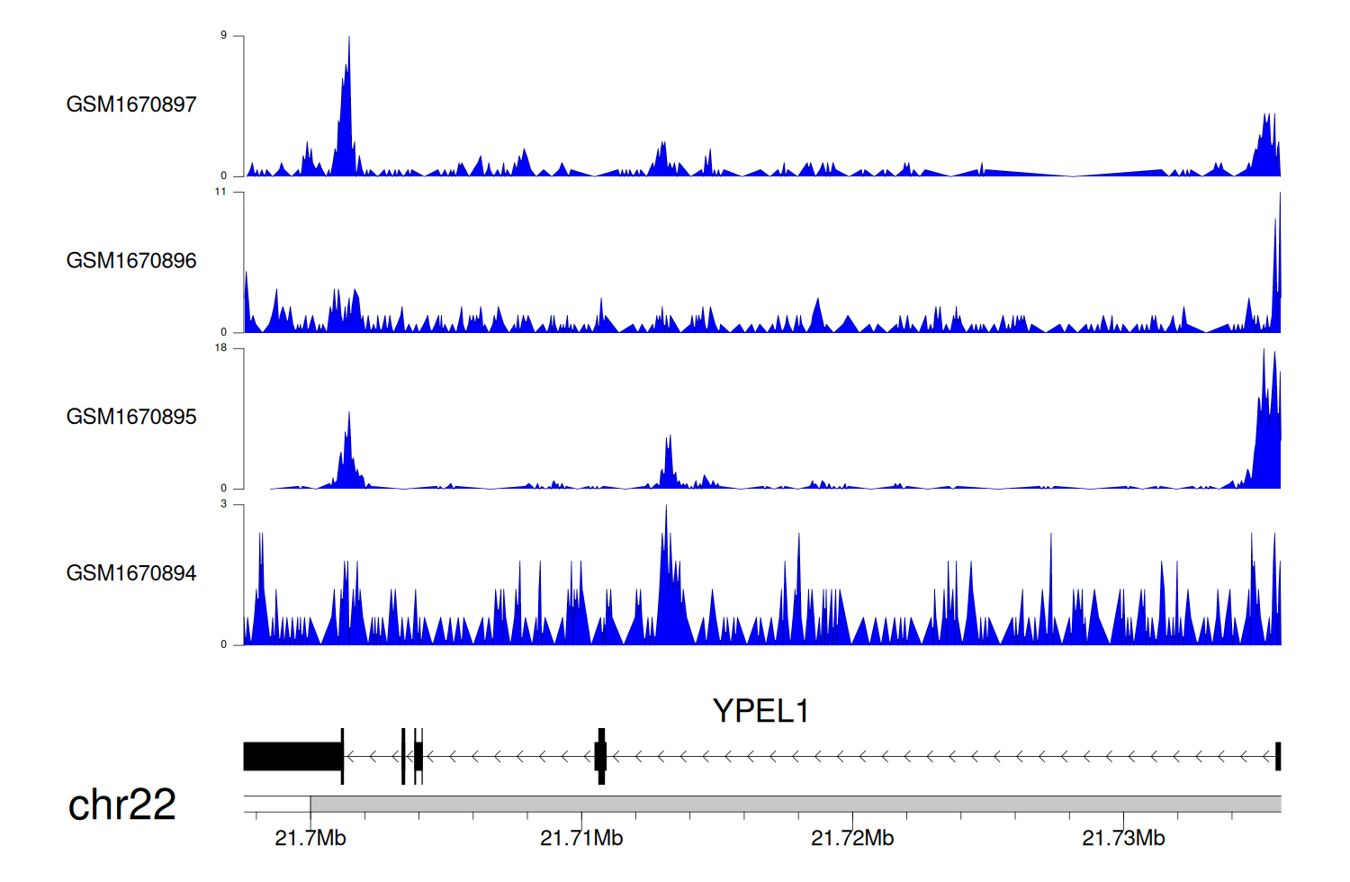 > Dataset: GSE68402 - YPEL1 peak across samples
