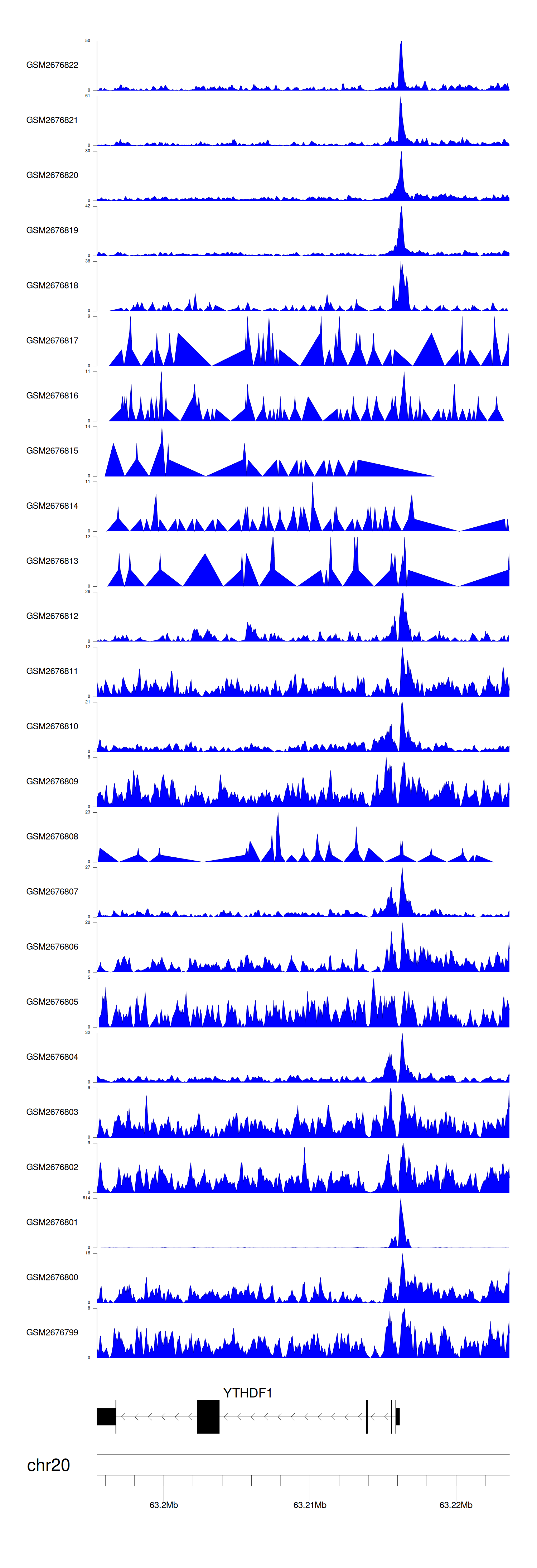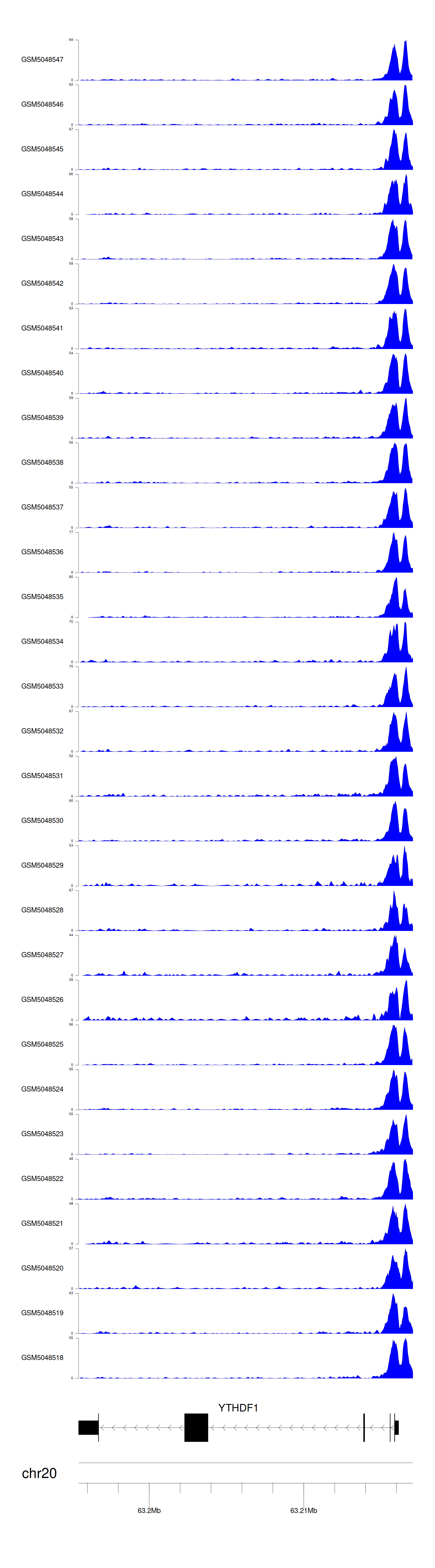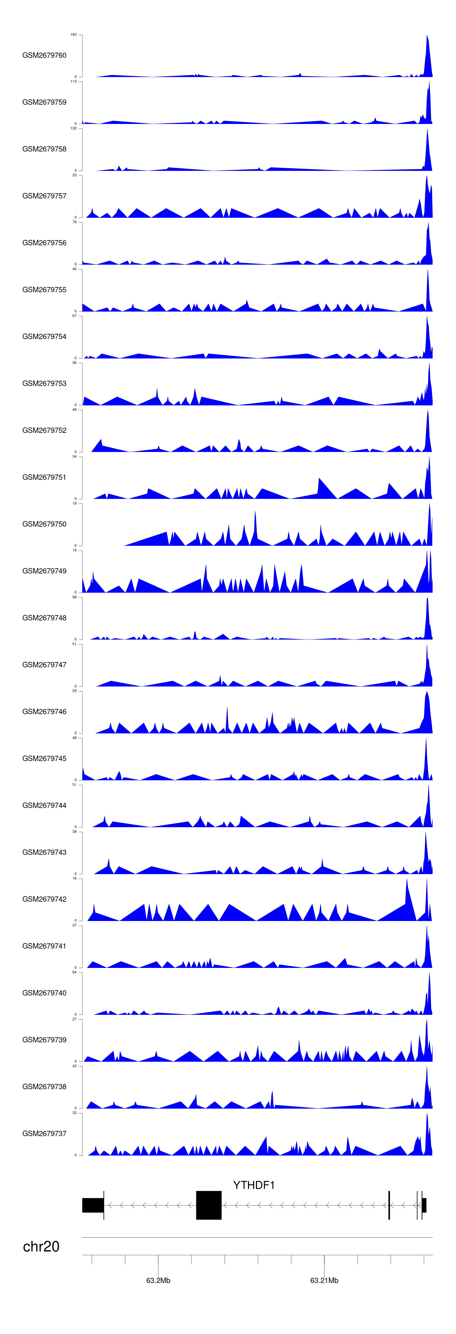 > Dataset: GSE165703 - YTHDF1 peak across samples
