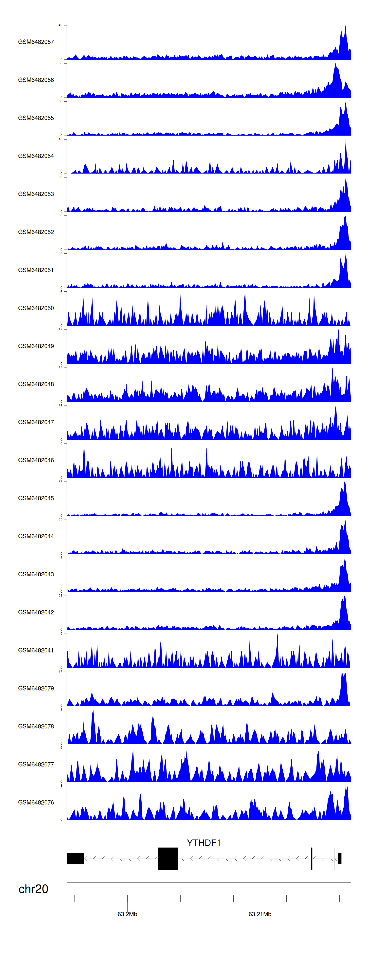 > Dataset: GSE165705 - YTHDF1 peak across samples