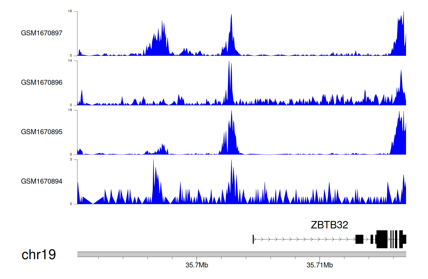 > Dataset: GSE68402 - ZBTB32 peak across samples