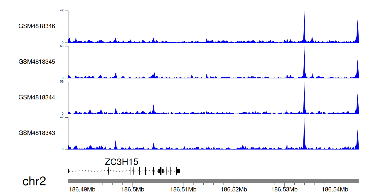 > Dataset: GSE270130 - ZC3H15 peak across samples