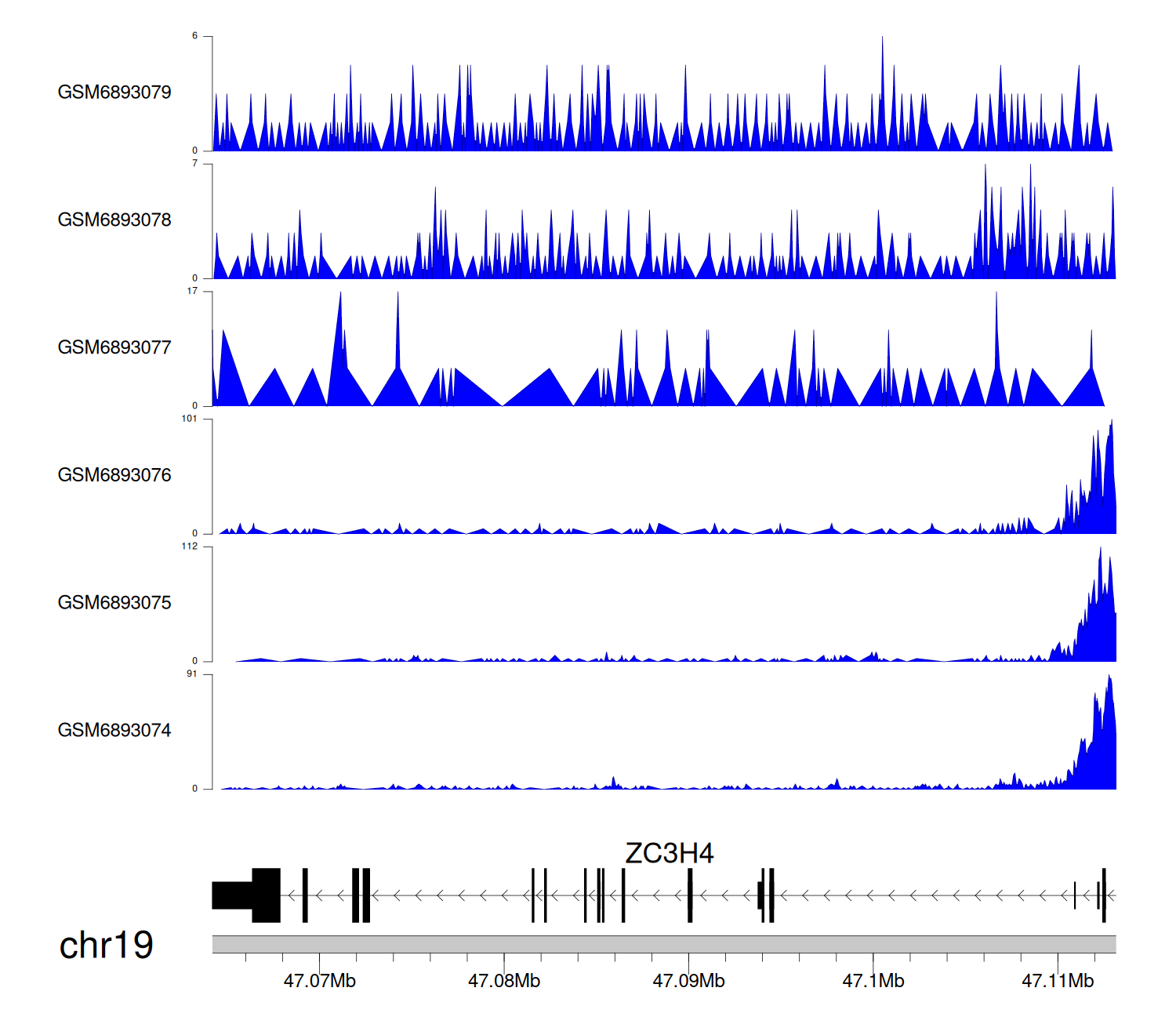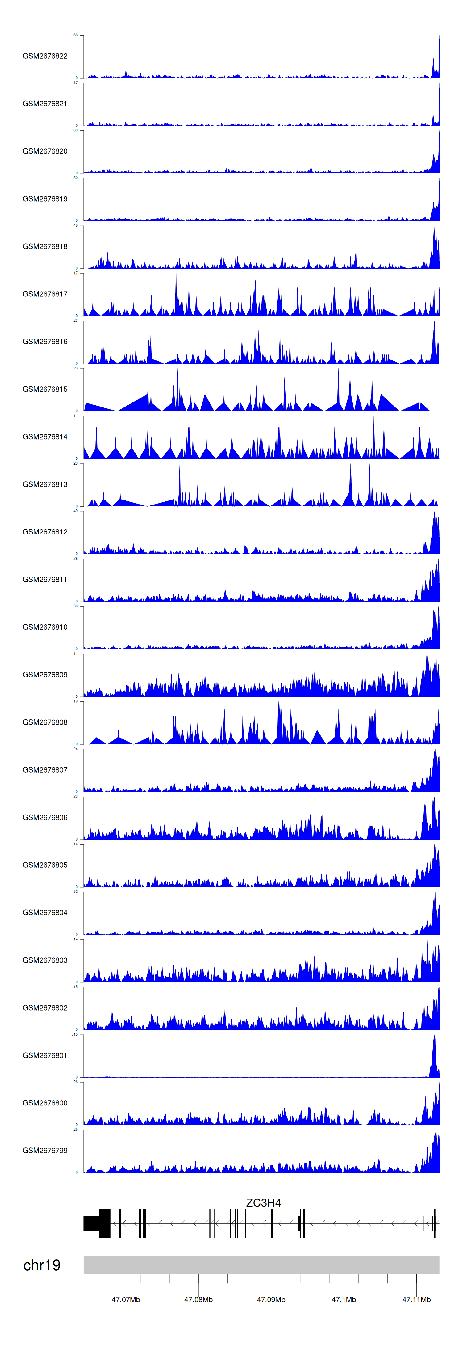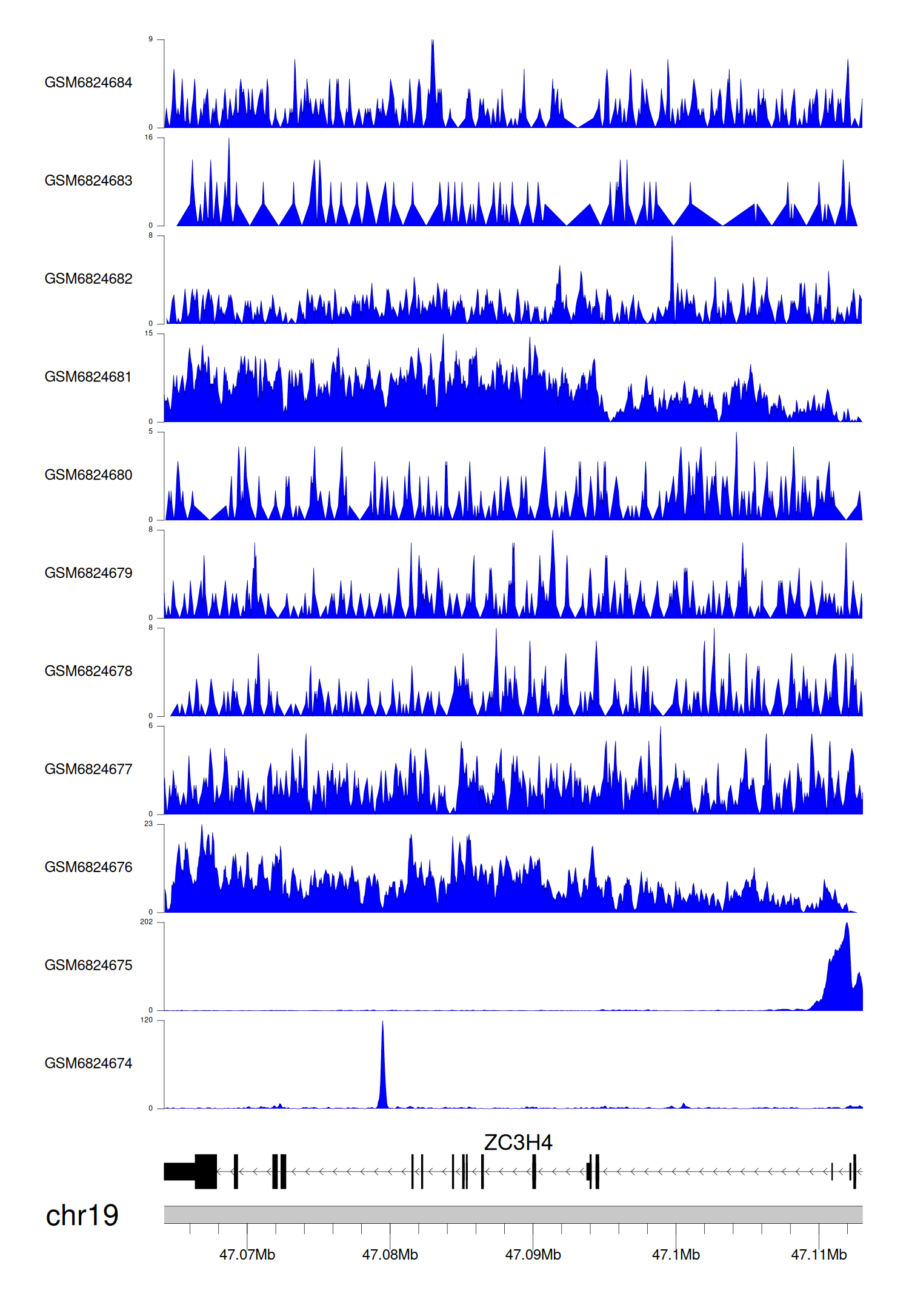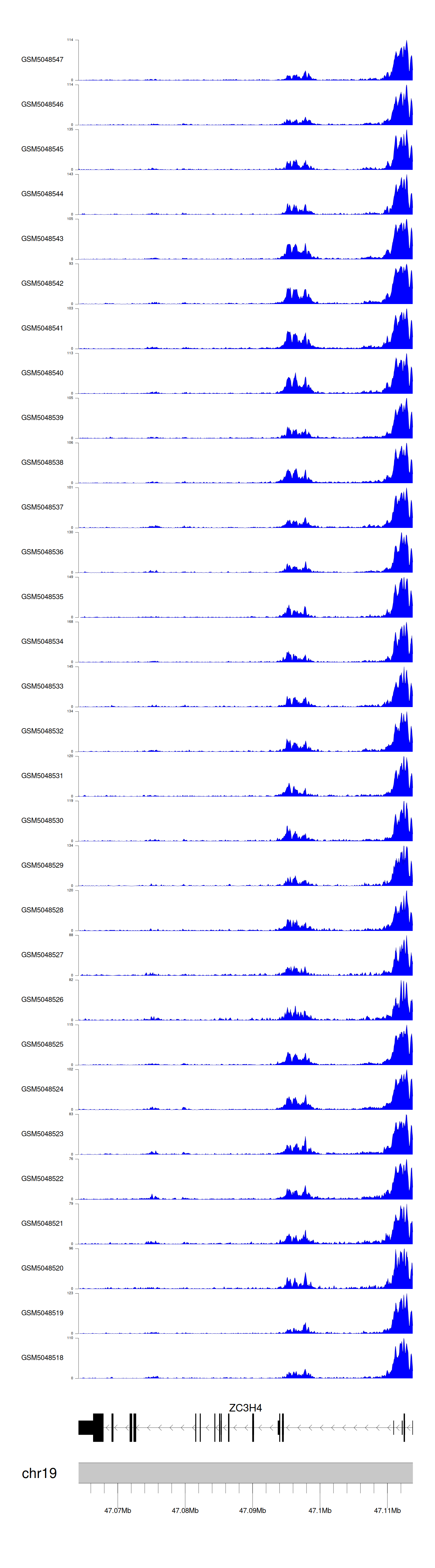 > Dataset: GSE165703 - ZC3H4 peak across samples