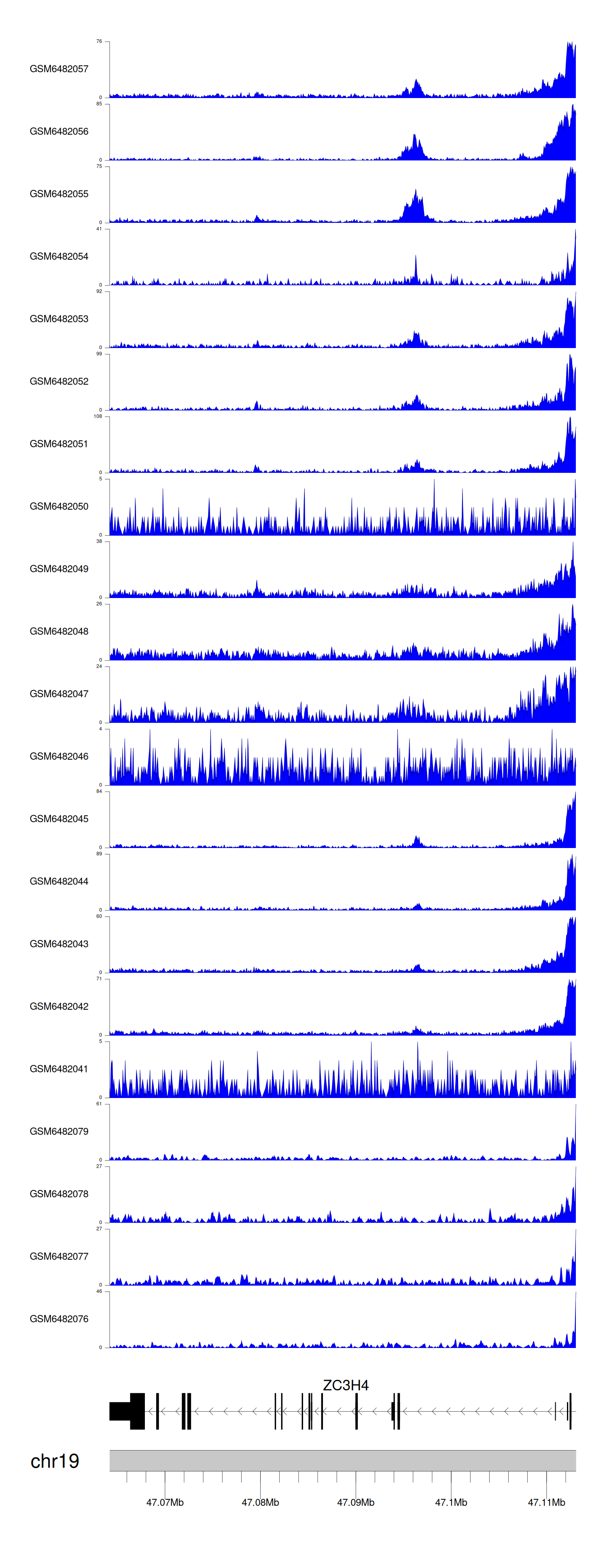 > Dataset: GSE165705 - ZC3H4 peak across samples
