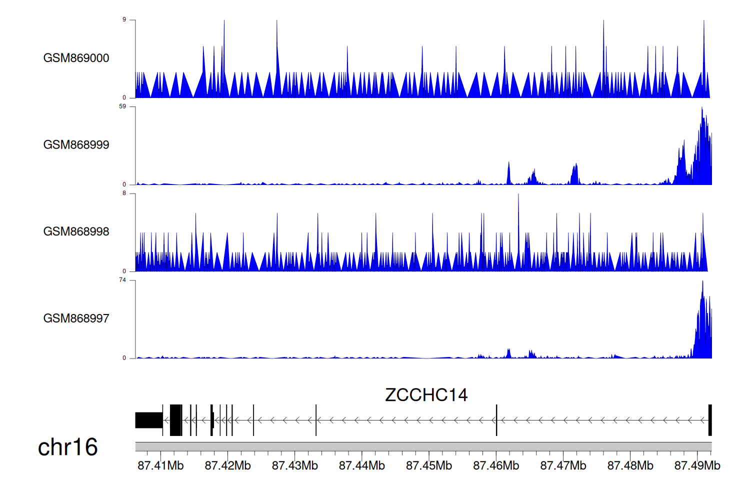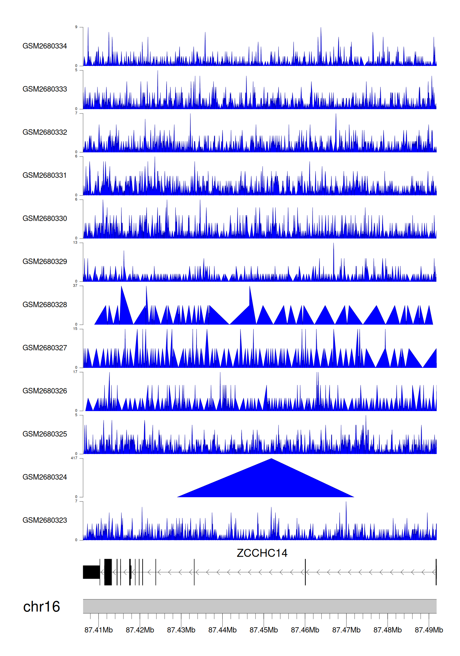 > Dataset: GSE68402 - ZCCHC14 peak across samples