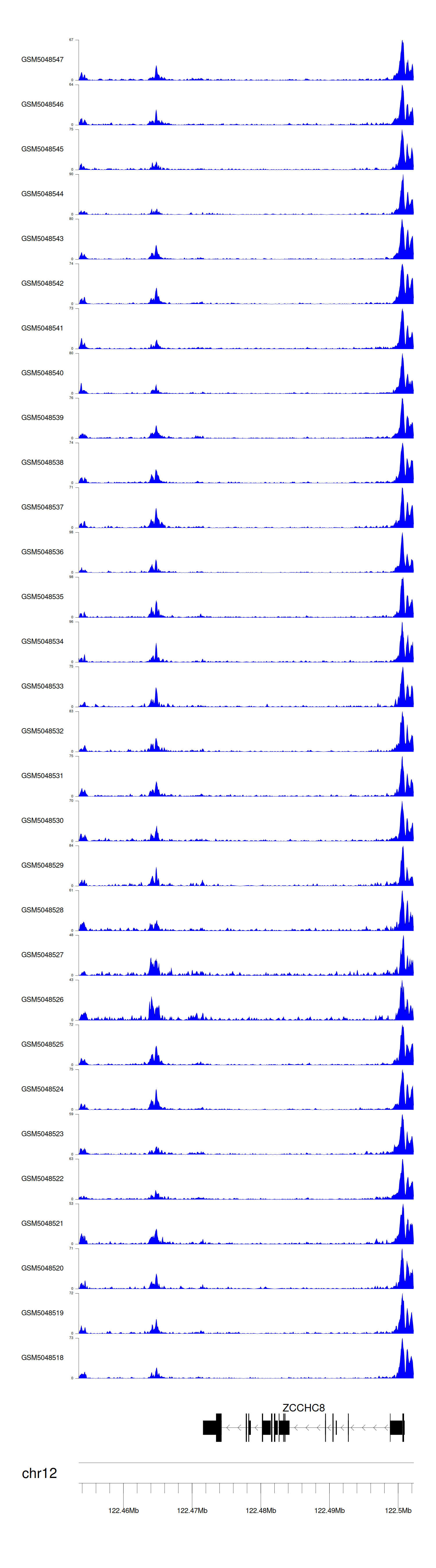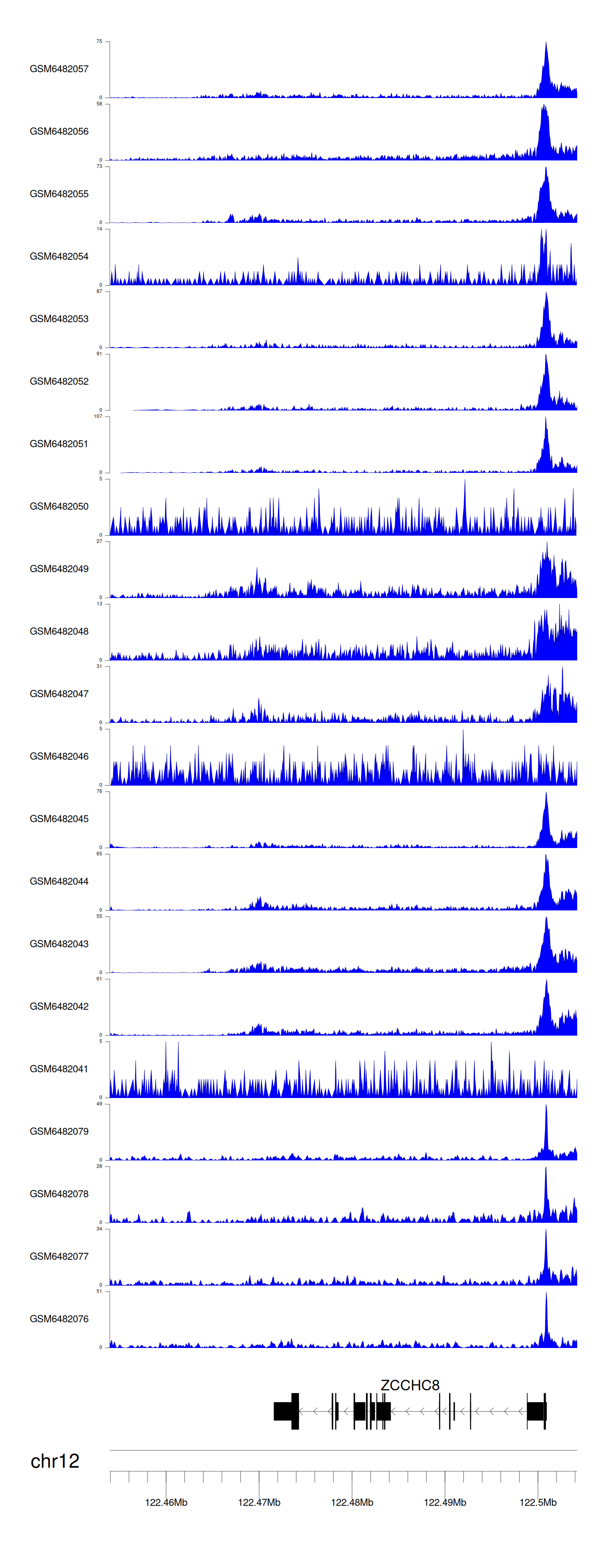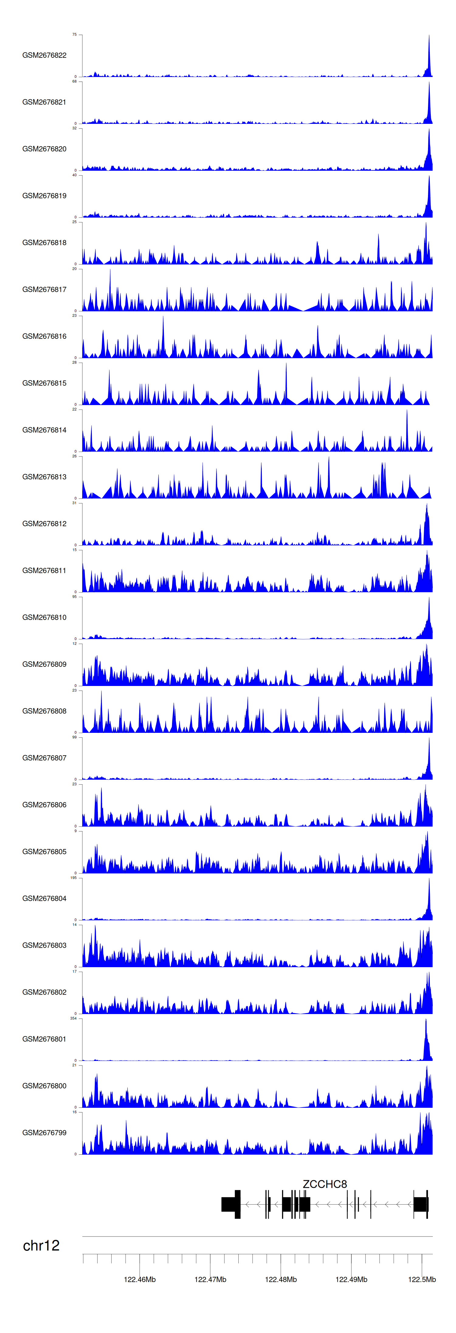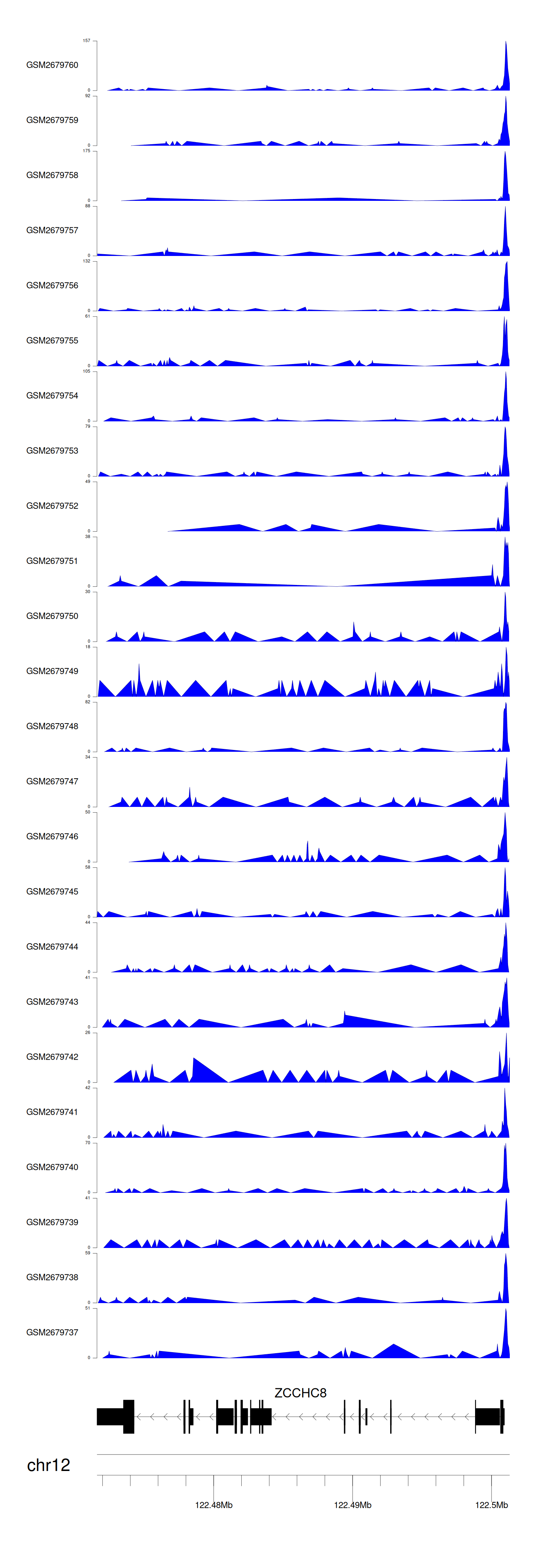 > Dataset: GSE165703 - ZCCHC8 peak across samples