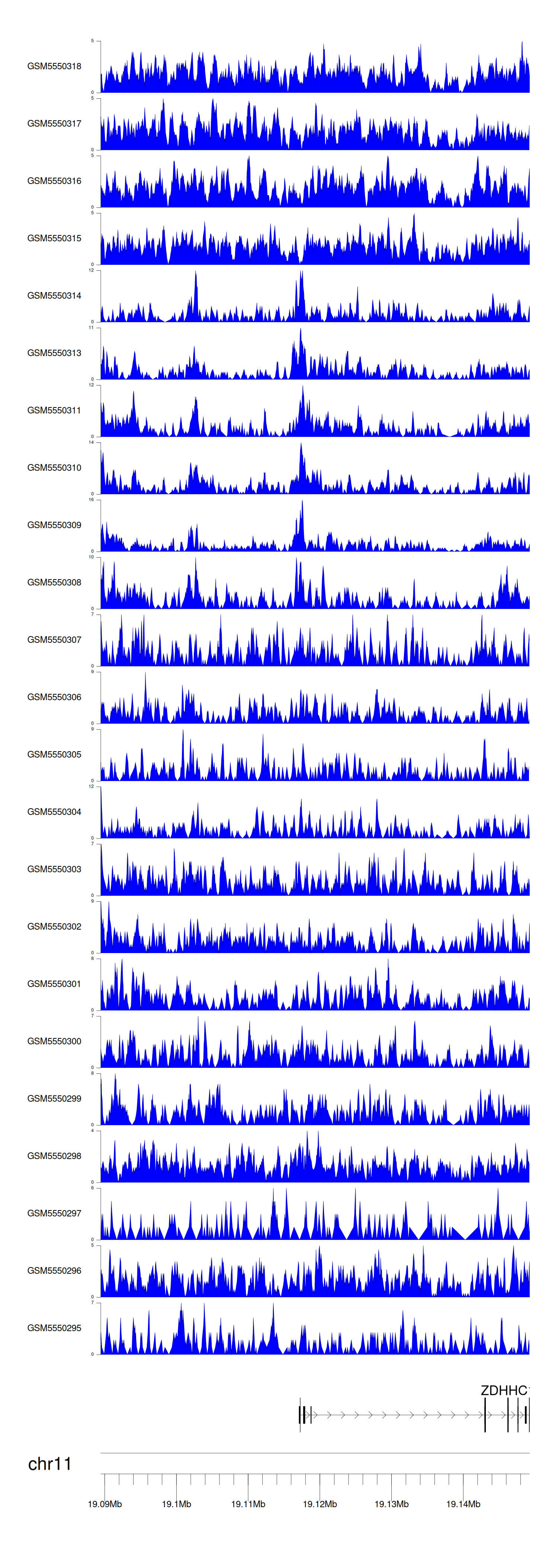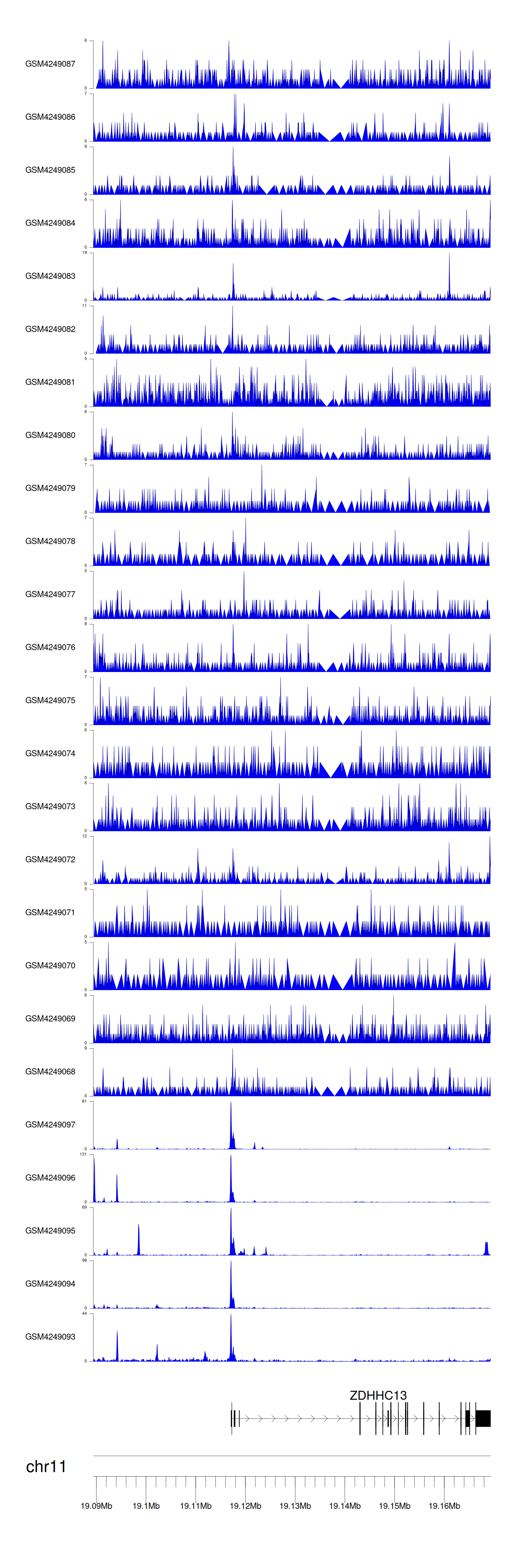 > Dataset: GSE143026 - ZDHHC13 peak across samples