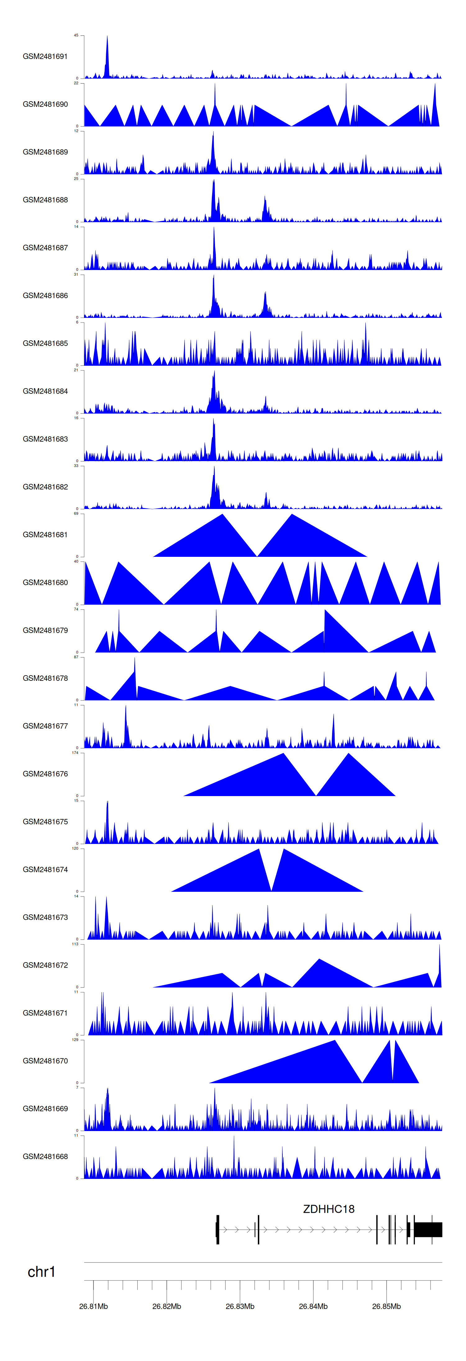 > Dataset: GSE94732 - ZDHHC18 peak across samples