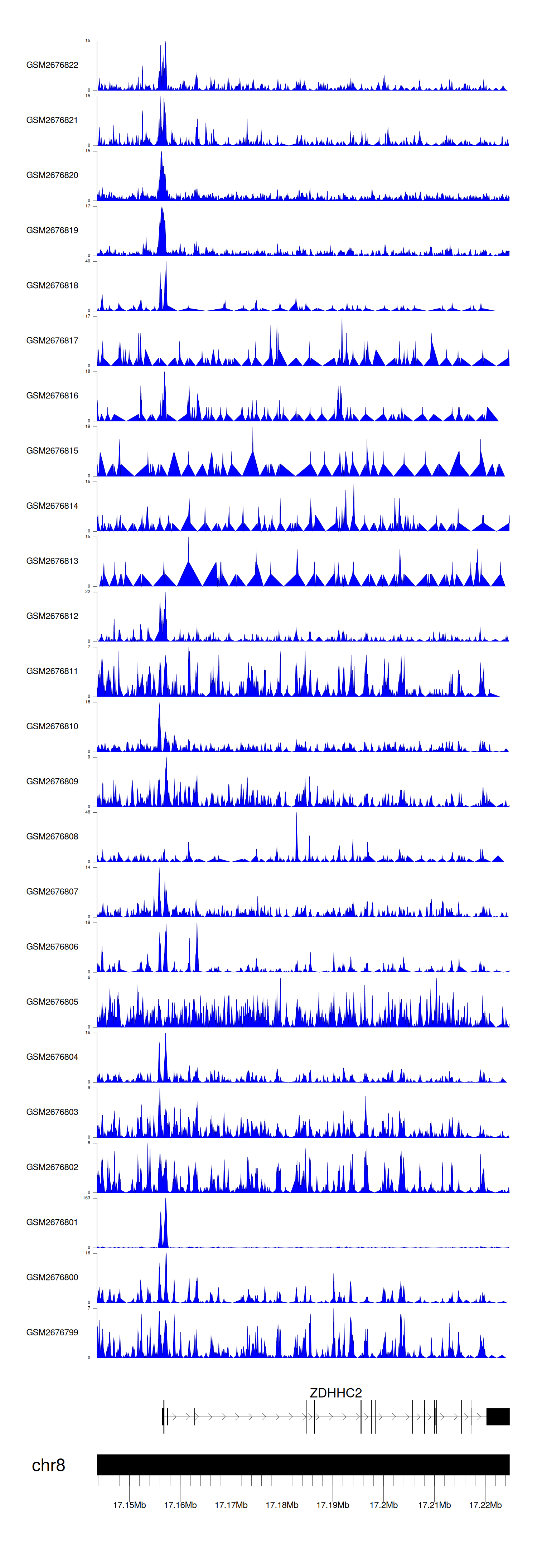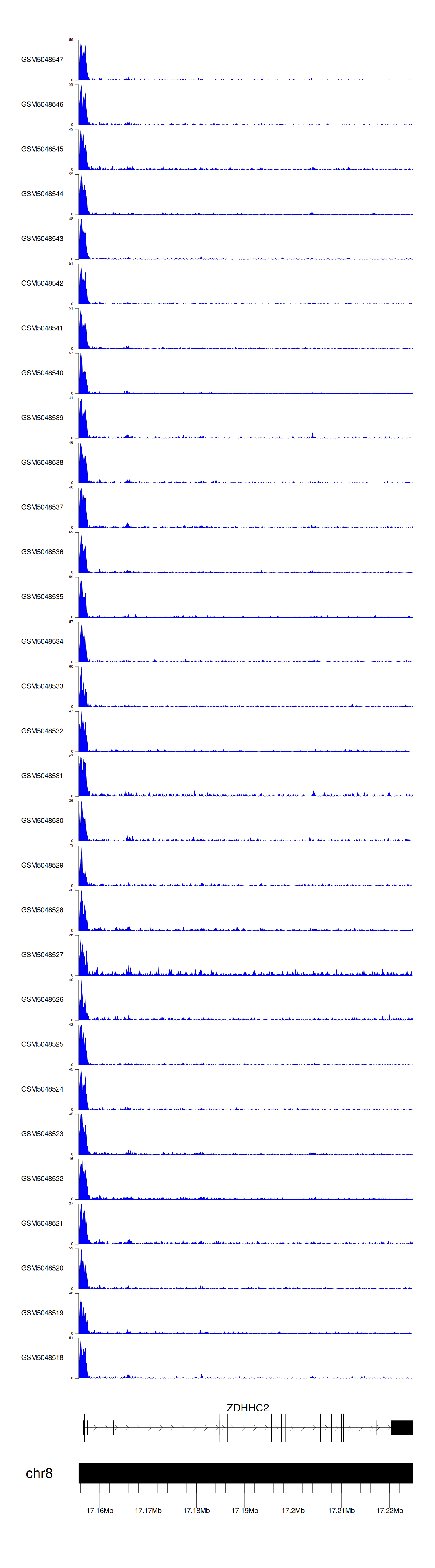 > Dataset: GSE165703 - ZDHHC2 peak across samples
