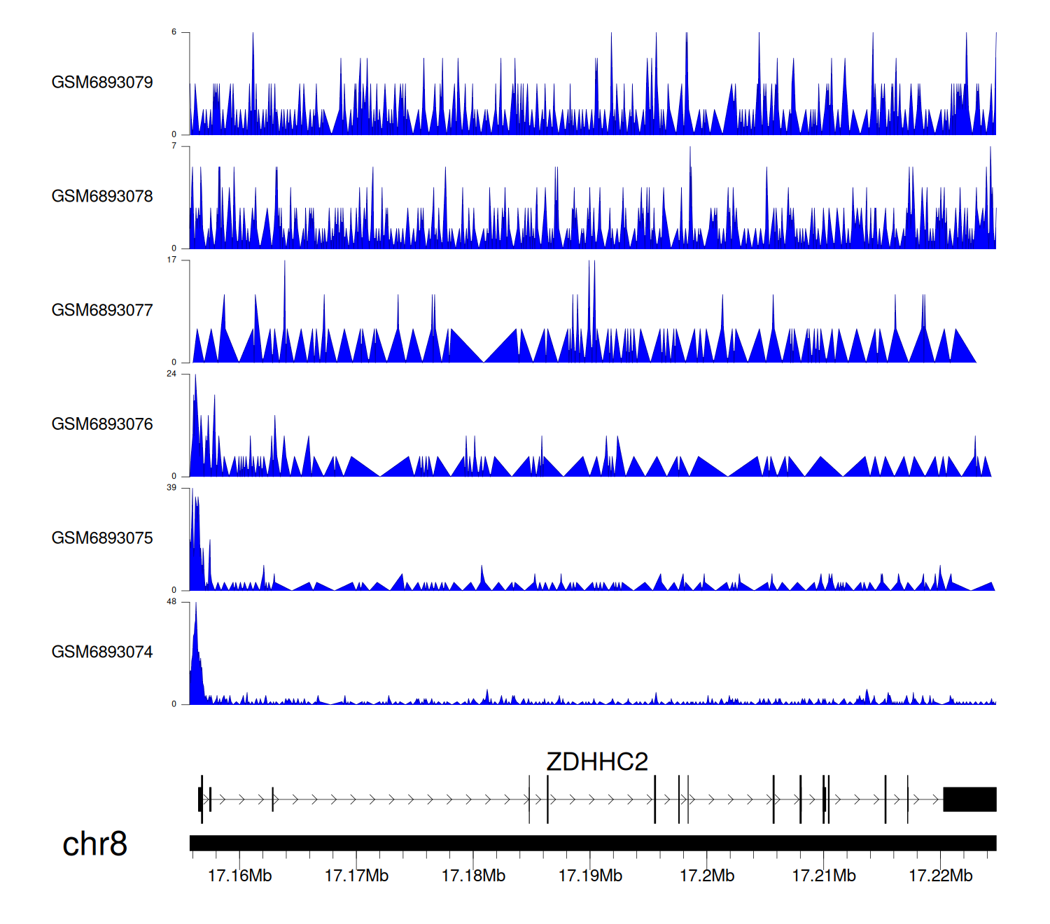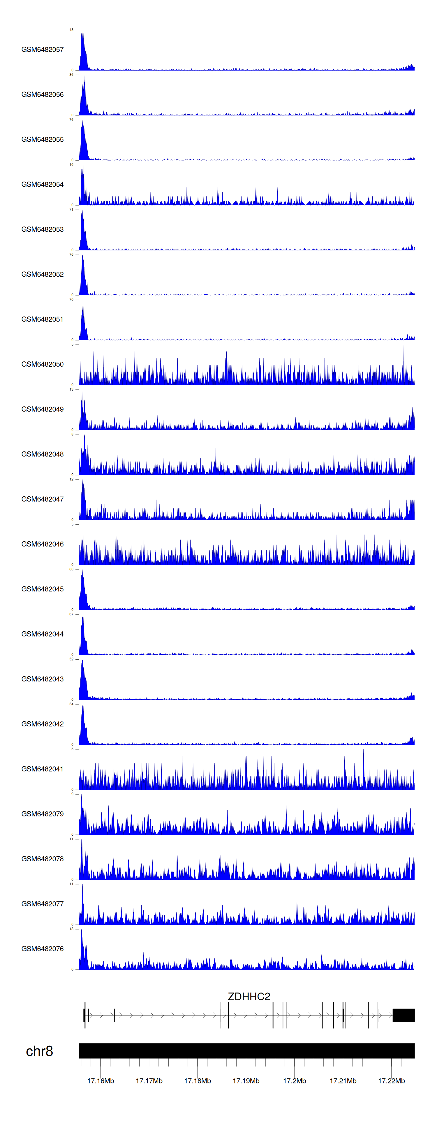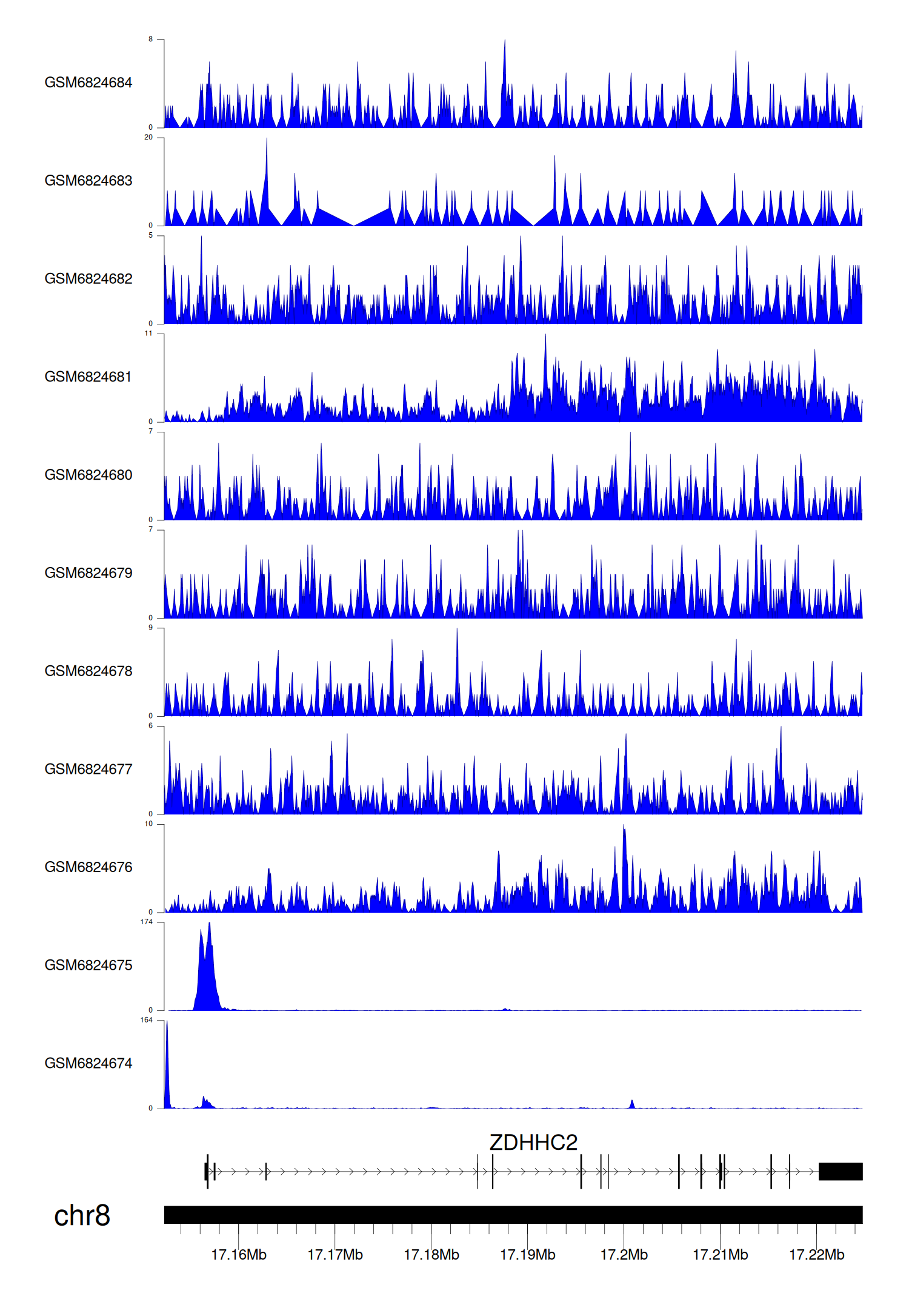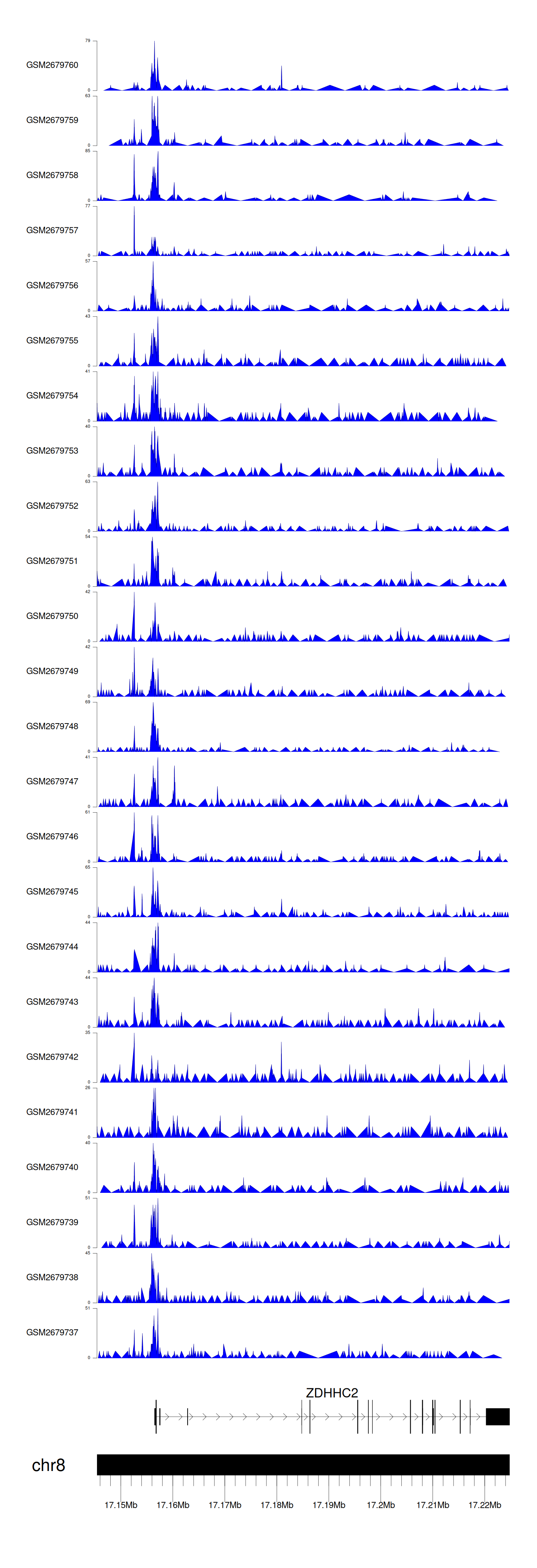 > Dataset: GSE211651 - ZDHHC2 peak across samples