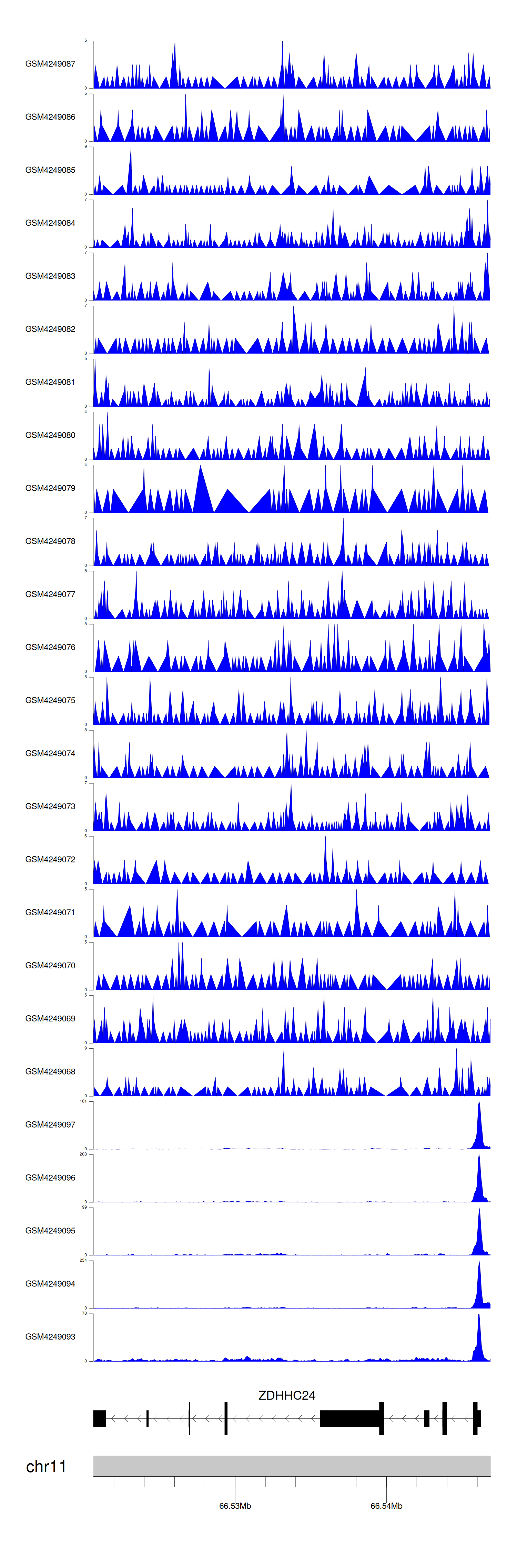 > Dataset: GSE143026 - ZDHHC24 peak across samples