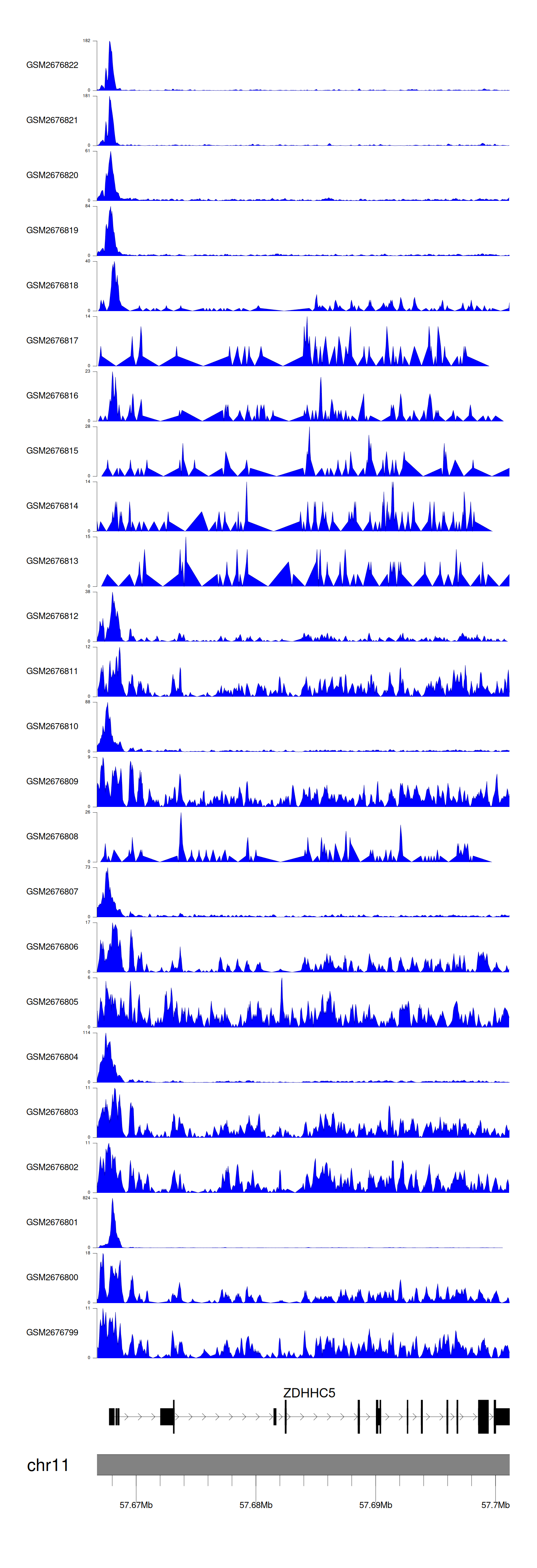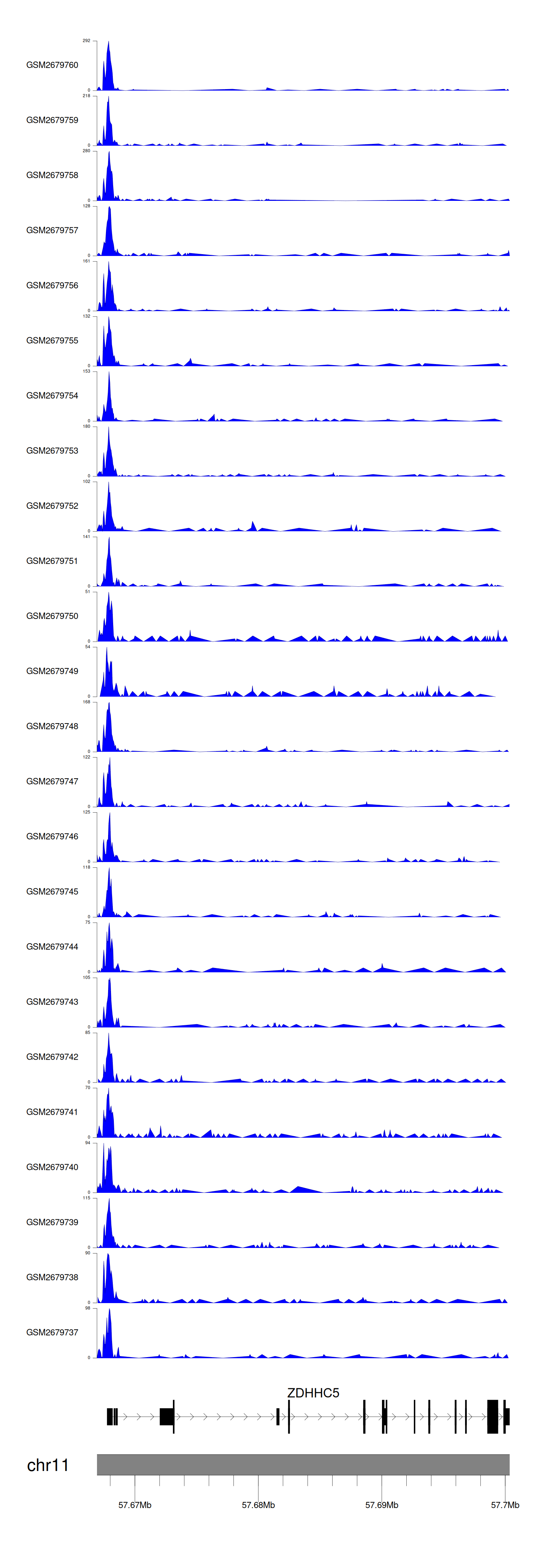 > Dataset: GSE100376 - ZDHHC5 peak across samples