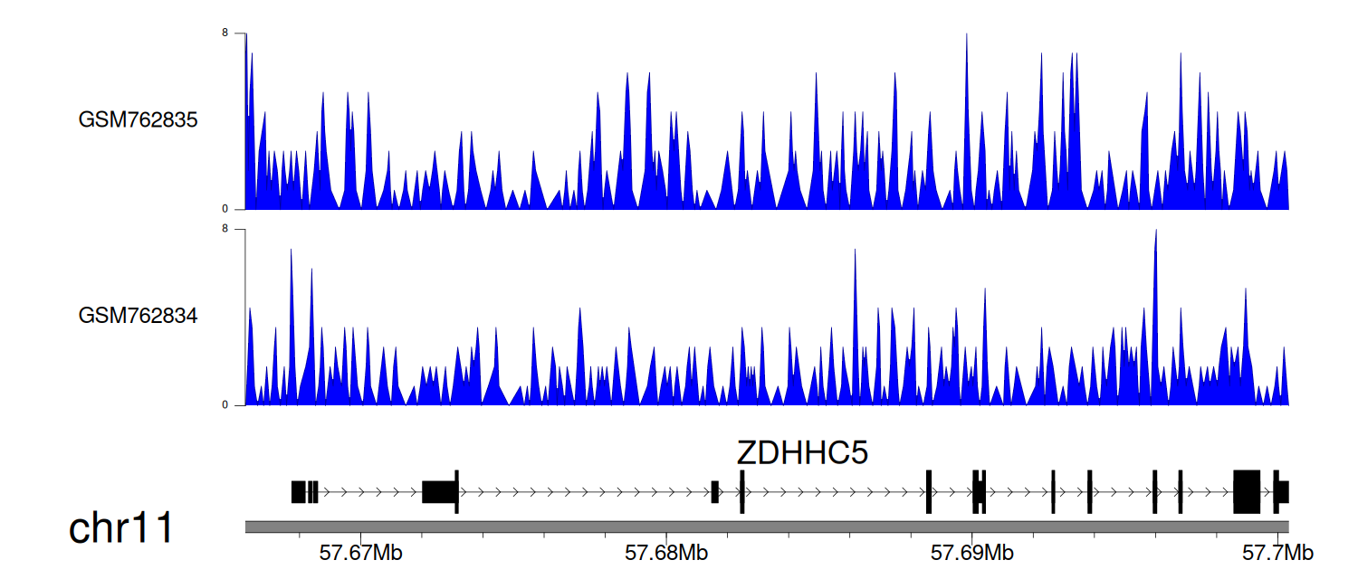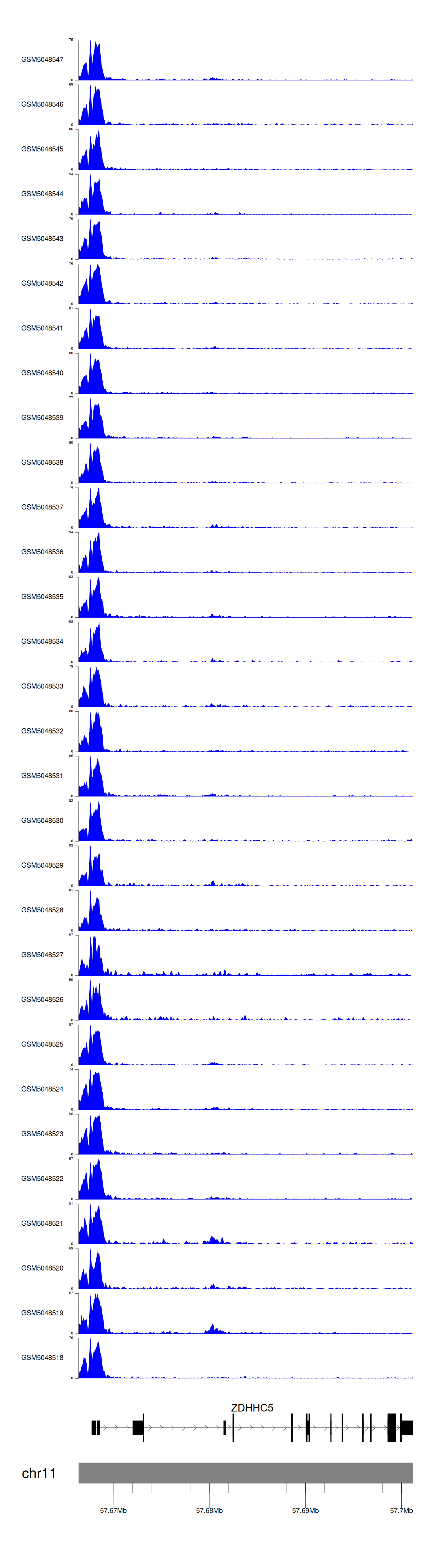 > Dataset: GSE30738 - ZDHHC5 peak across samples
