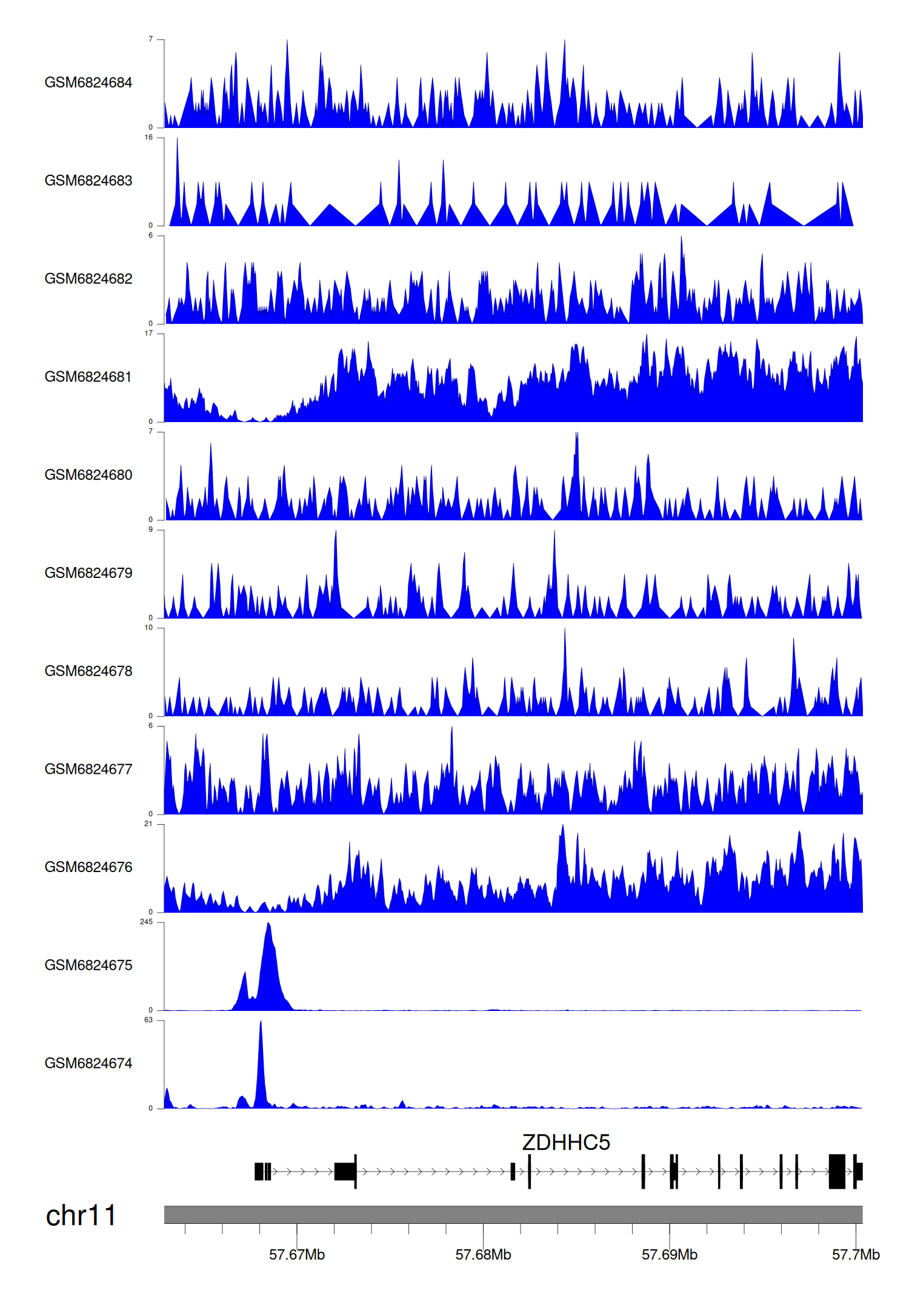 > Dataset: GSE165705 - ZDHHC5 peak across samples