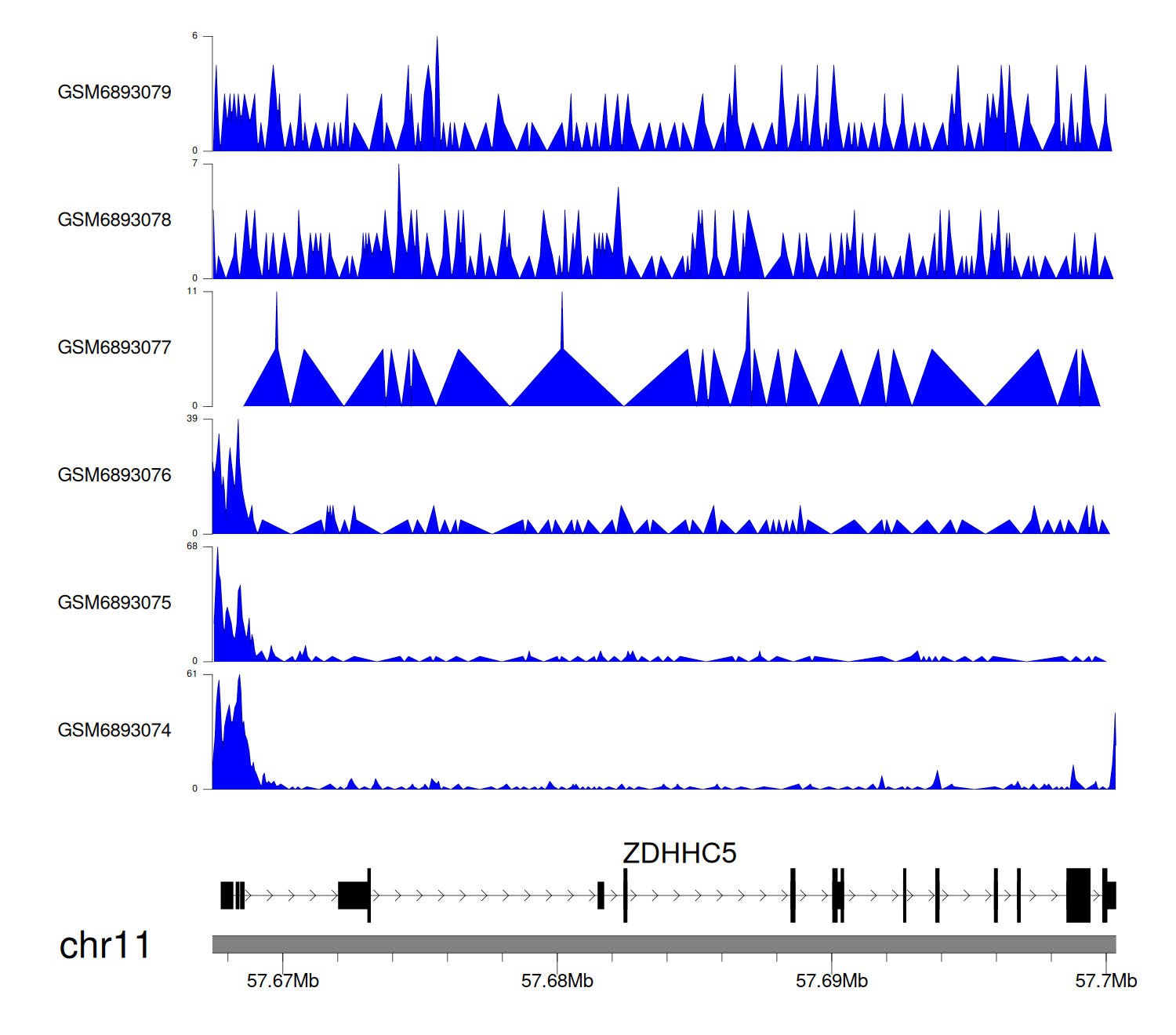 > Dataset: GSE211651 - ZDHHC5 peak across samples