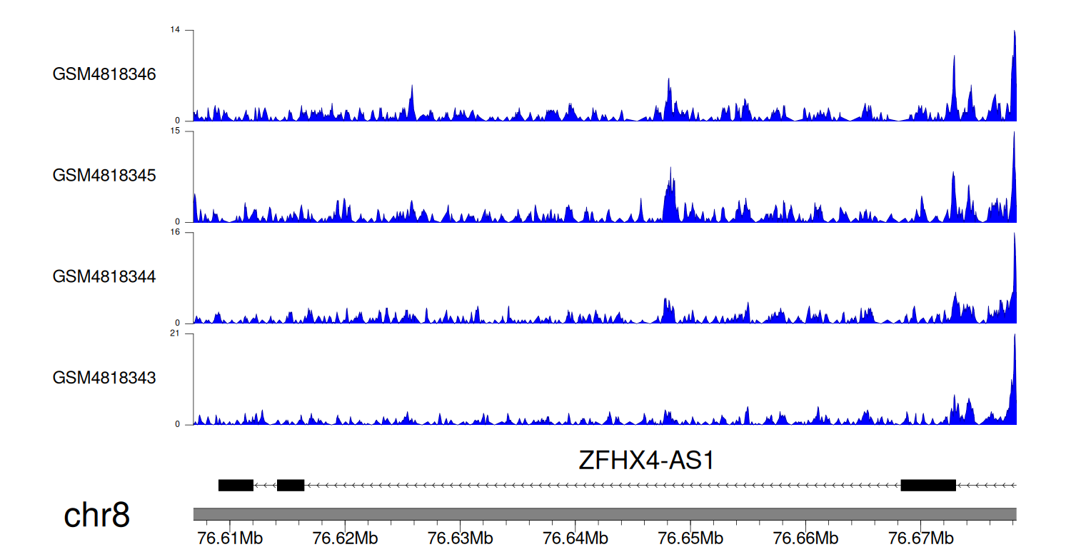 > Dataset: GSE270130 - ZFHX4-AS1 peak across samples