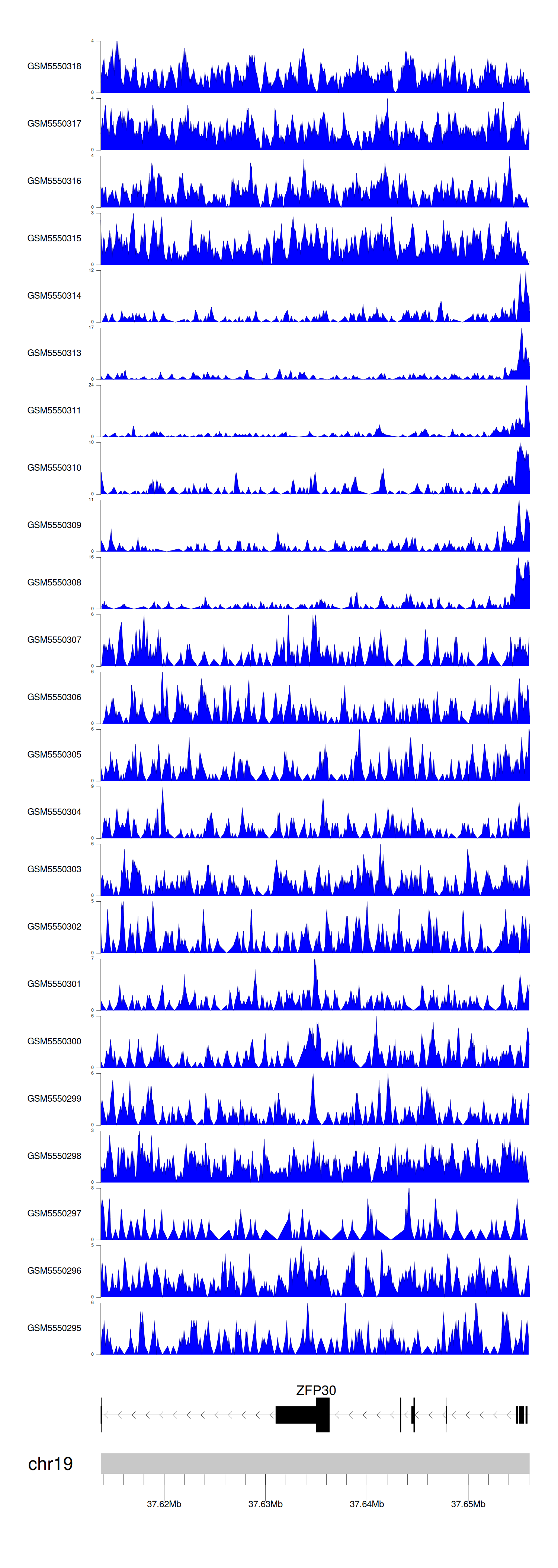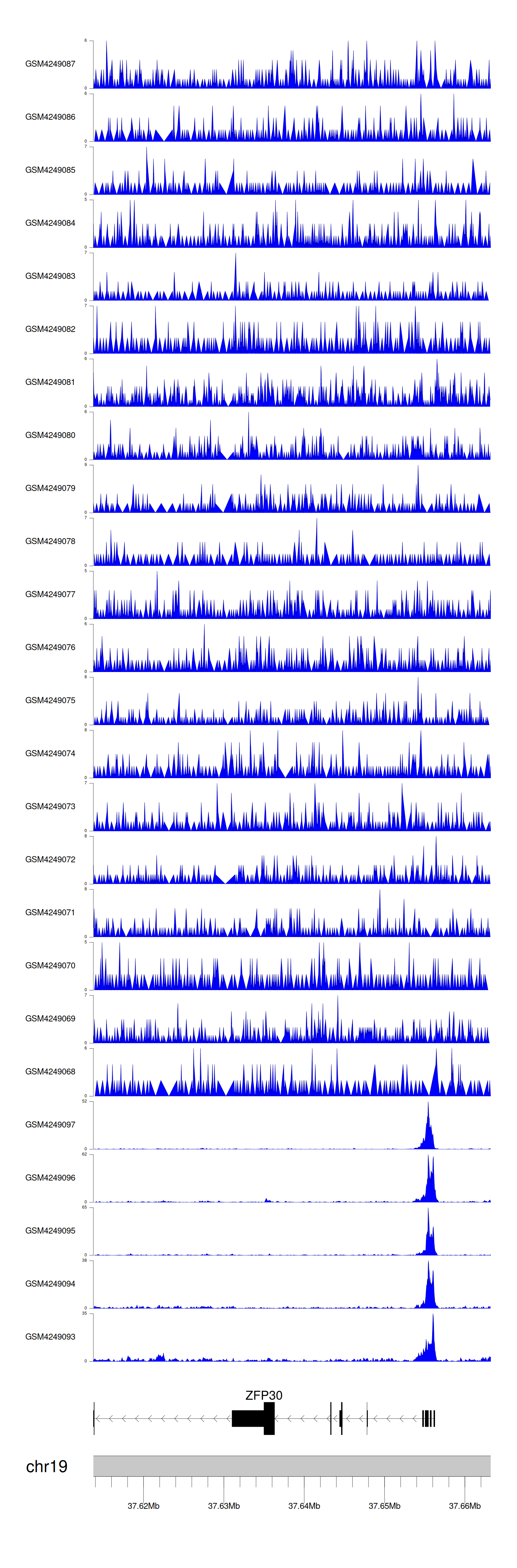> Dataset: GSE143026 - ZFP30 peak across samples