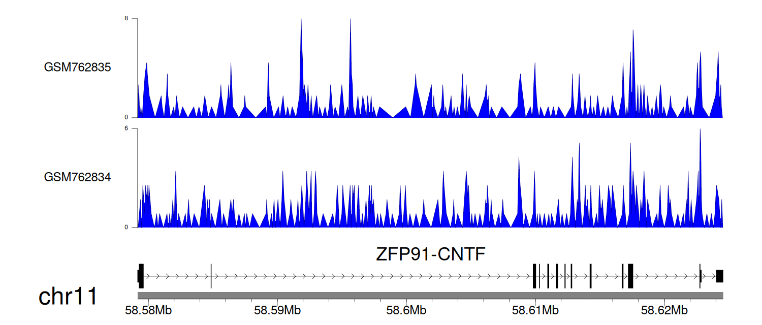 > Dataset: GSE30738 - ZFP91-CNTF peak across samples