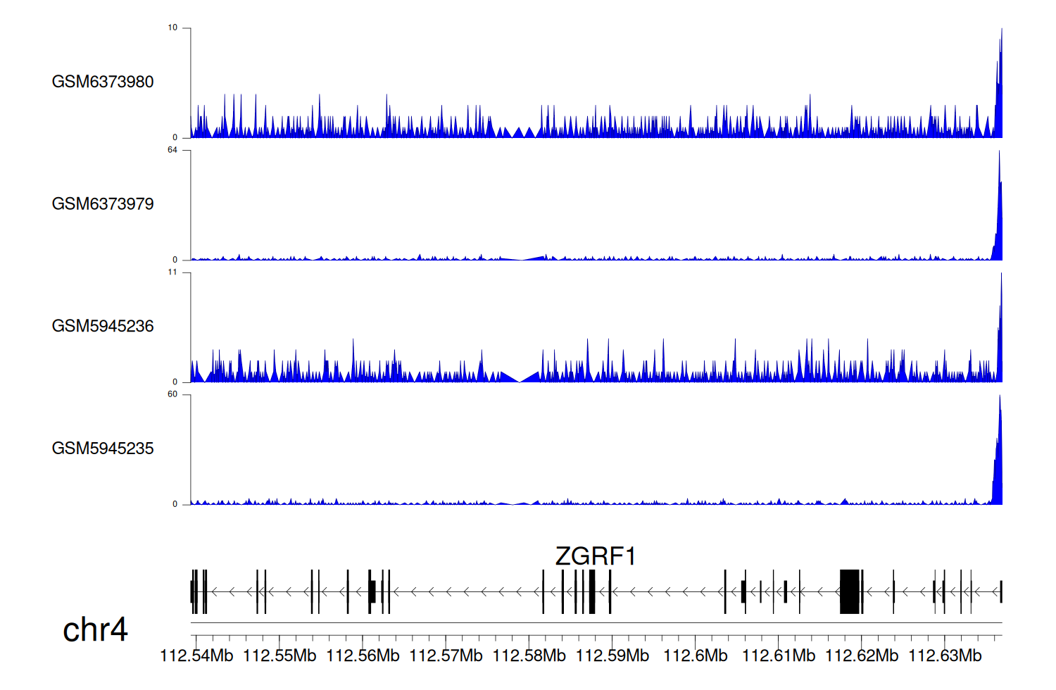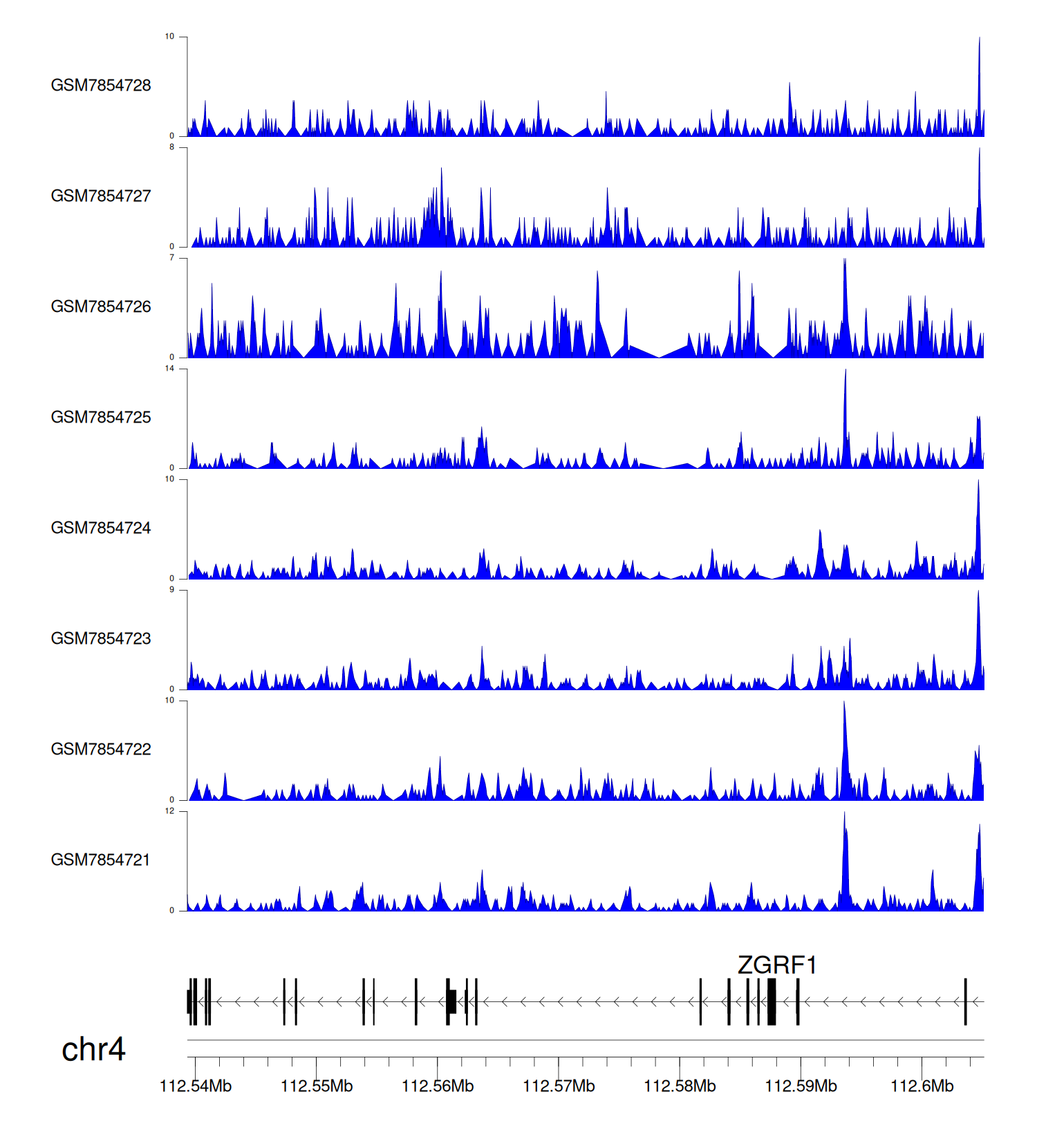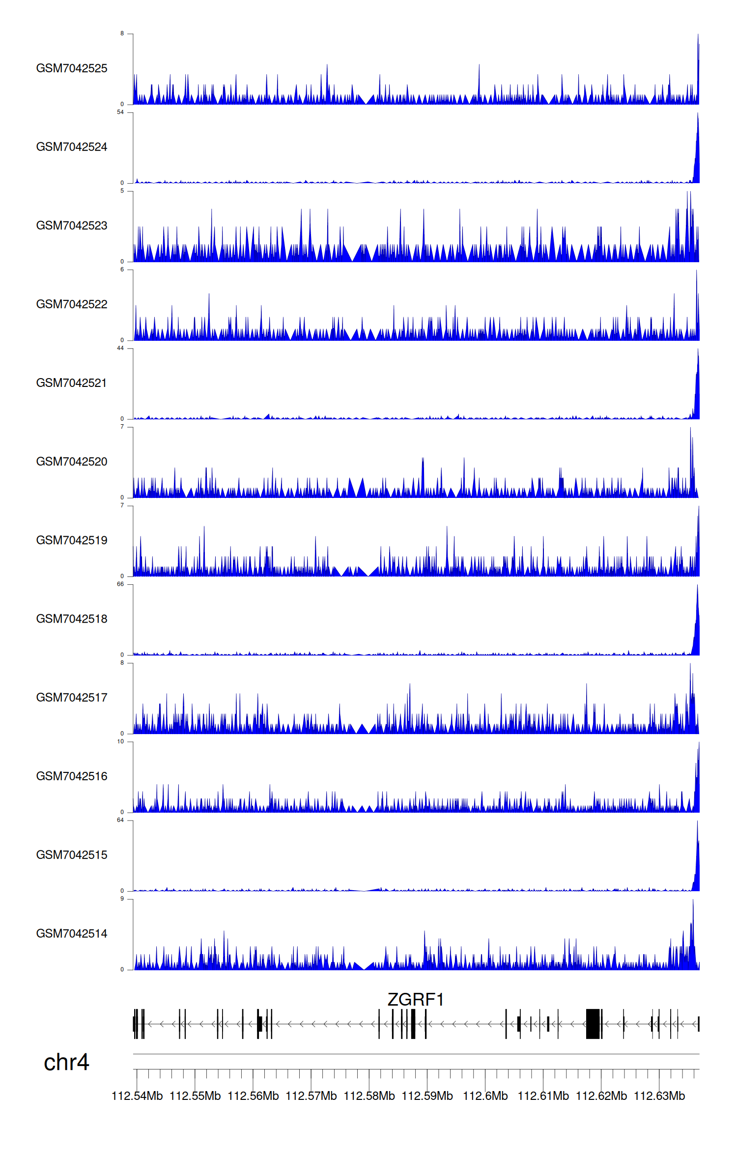 > Dataset: GSE246060 - ZGRF1 peak across samples