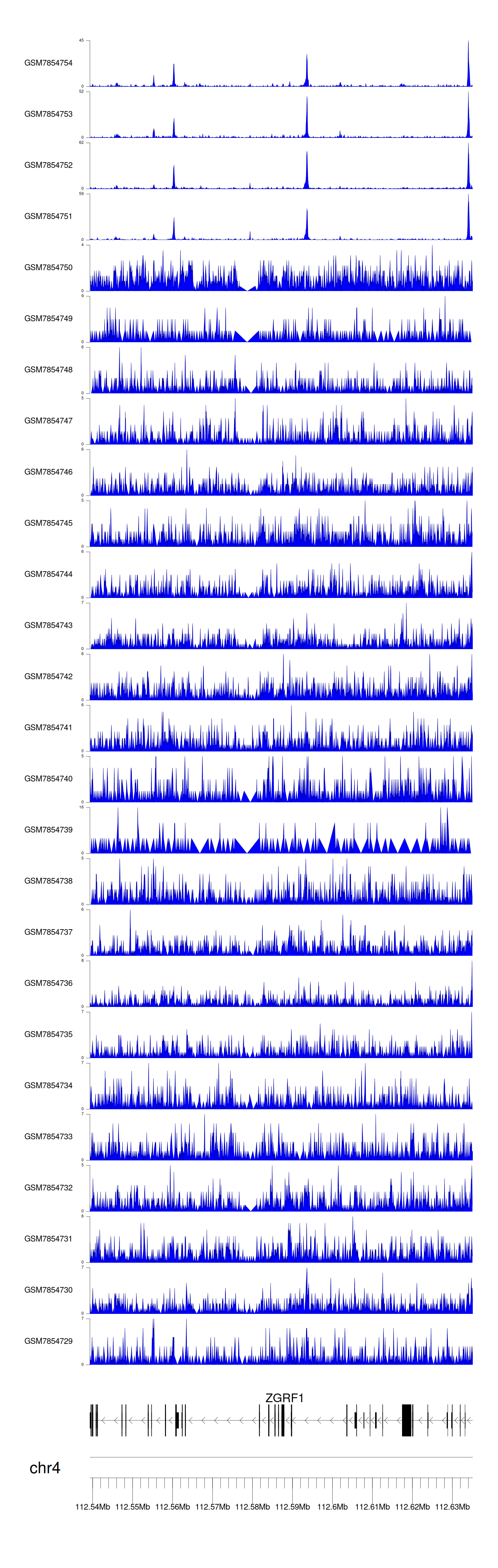 > Dataset: GSE198334 - ZGRF1 peak across samples