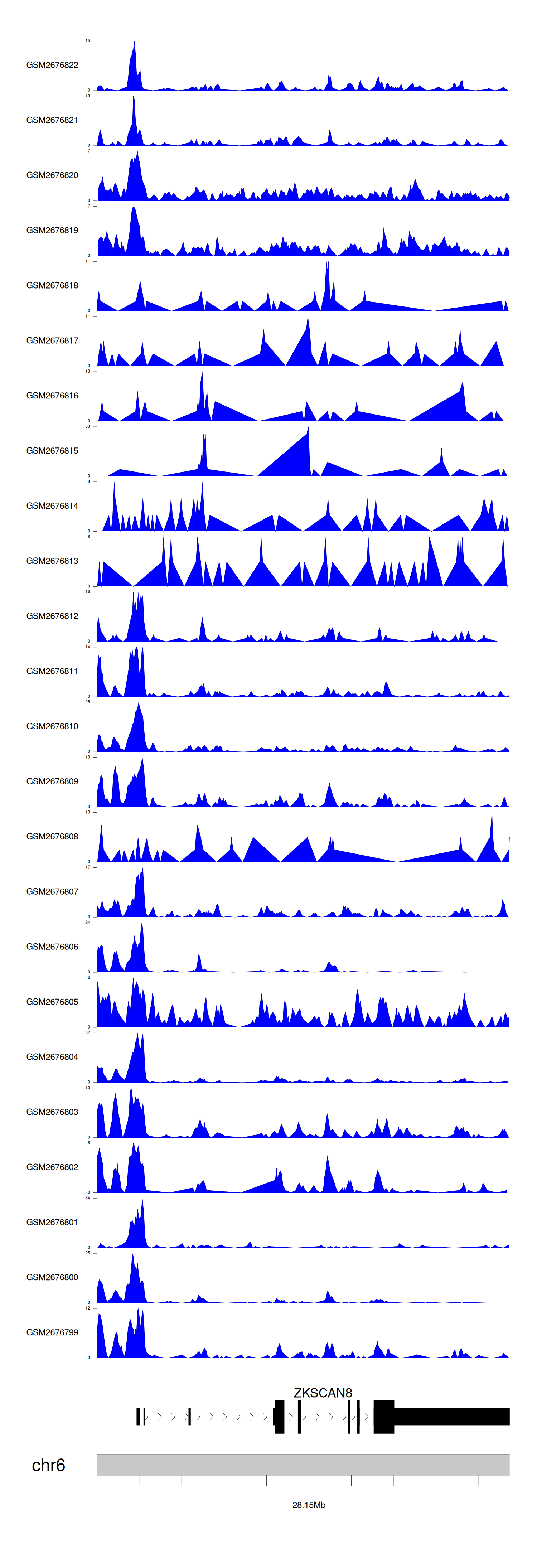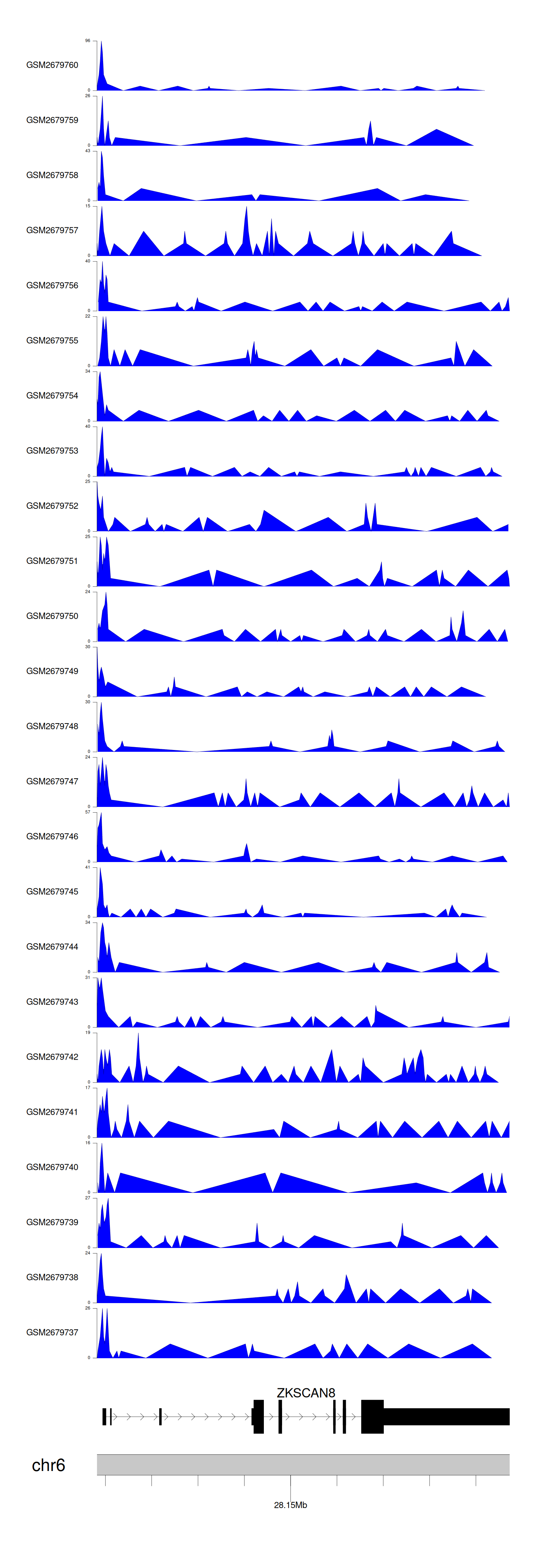 > Dataset: GSE30738 - ZKSCAN8 peak across samples