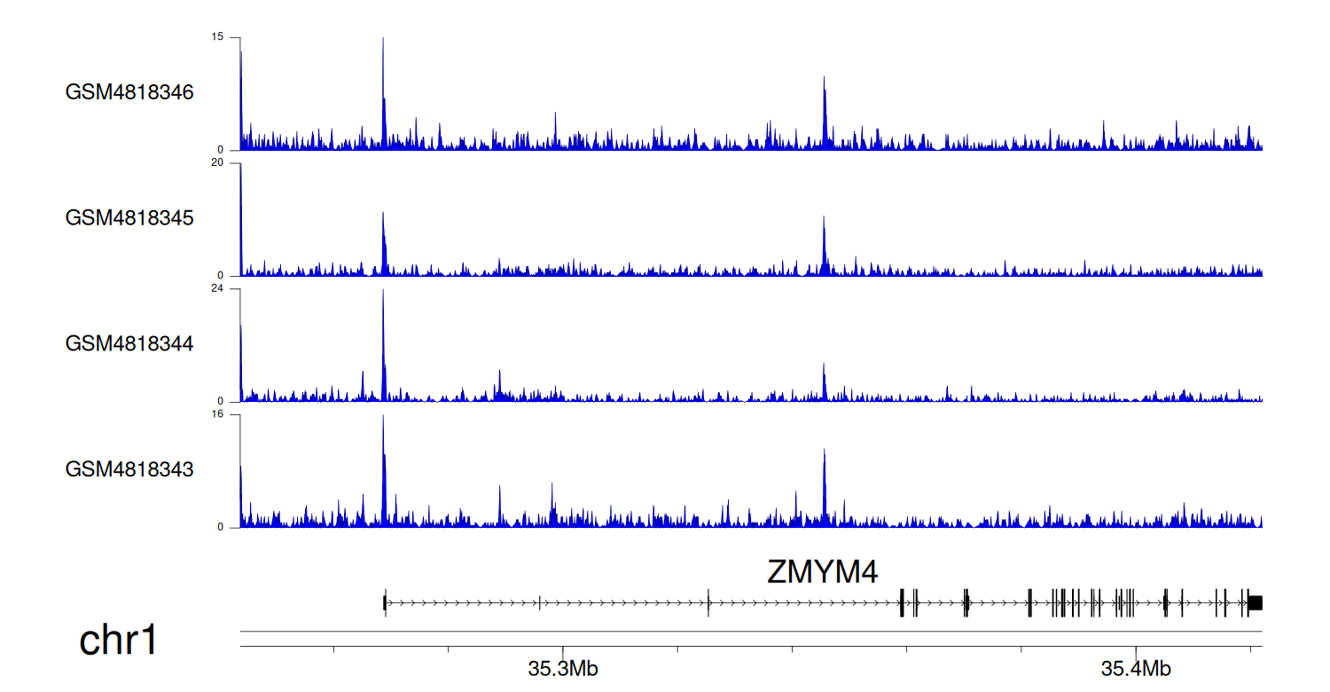 > Dataset: GSE270130 - ZMYM4 peak across samples
