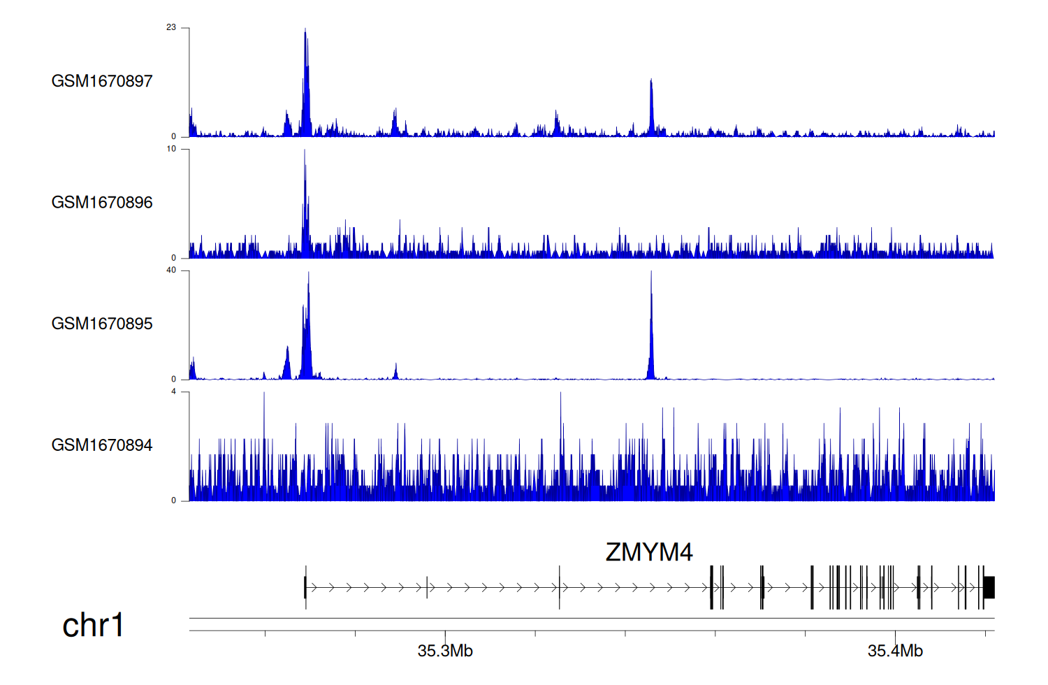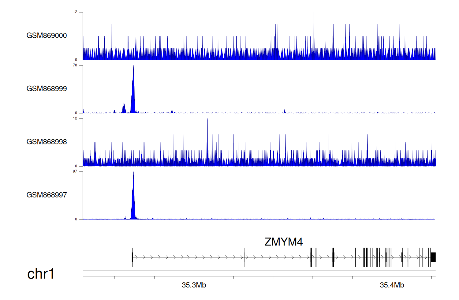 > Dataset: GSE35465 - ZMYM4 peak across samples