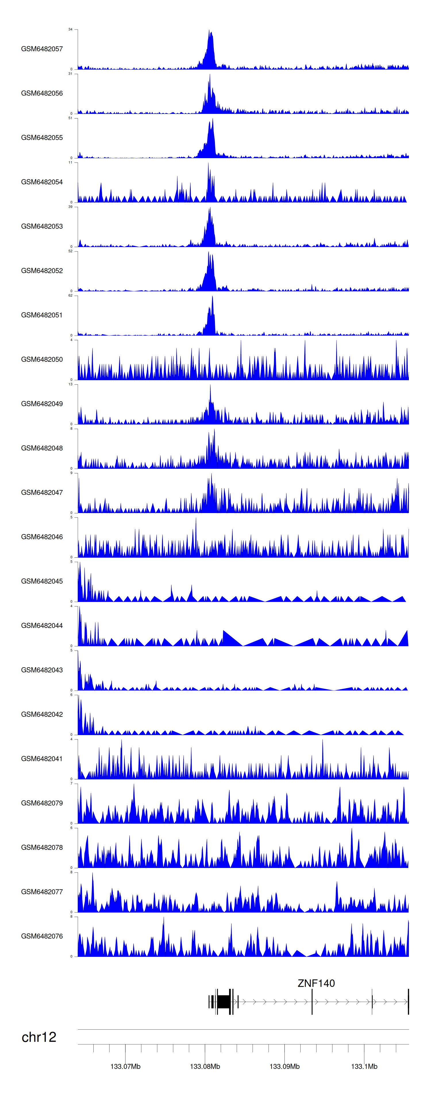 > Dataset: GSE165703 - ZNF140 peak across samples