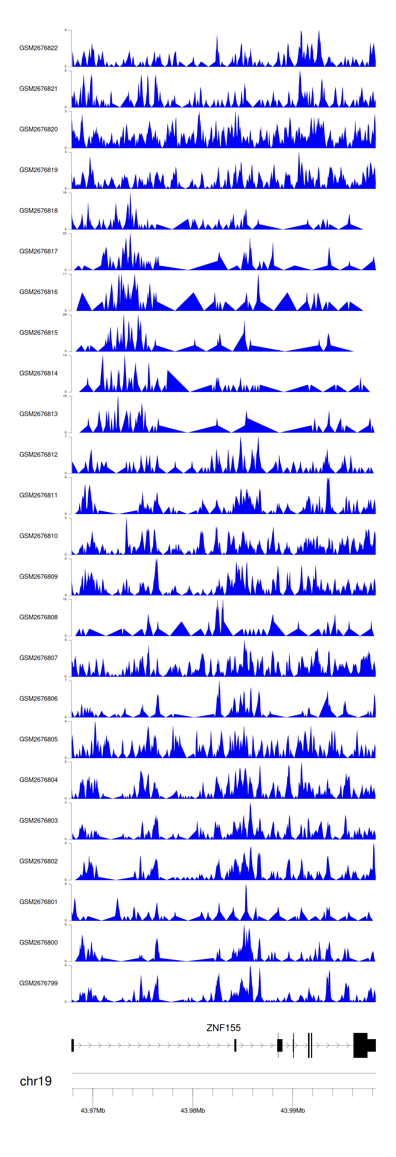 > Dataset: GSE165703 - ZNF155 peak across samples