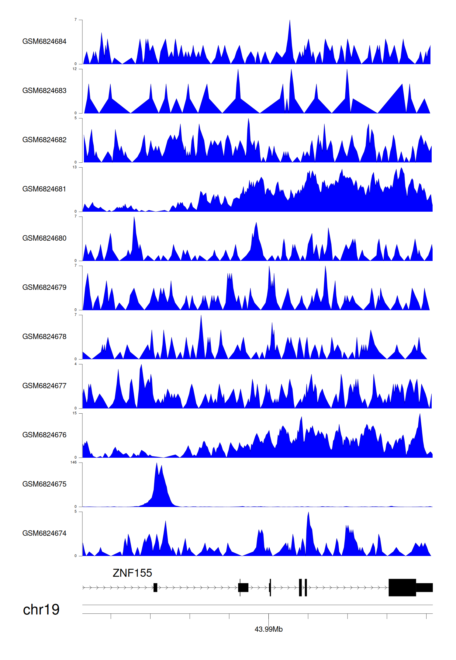 > Dataset: GSE144329 - ZNF155 peak across samples