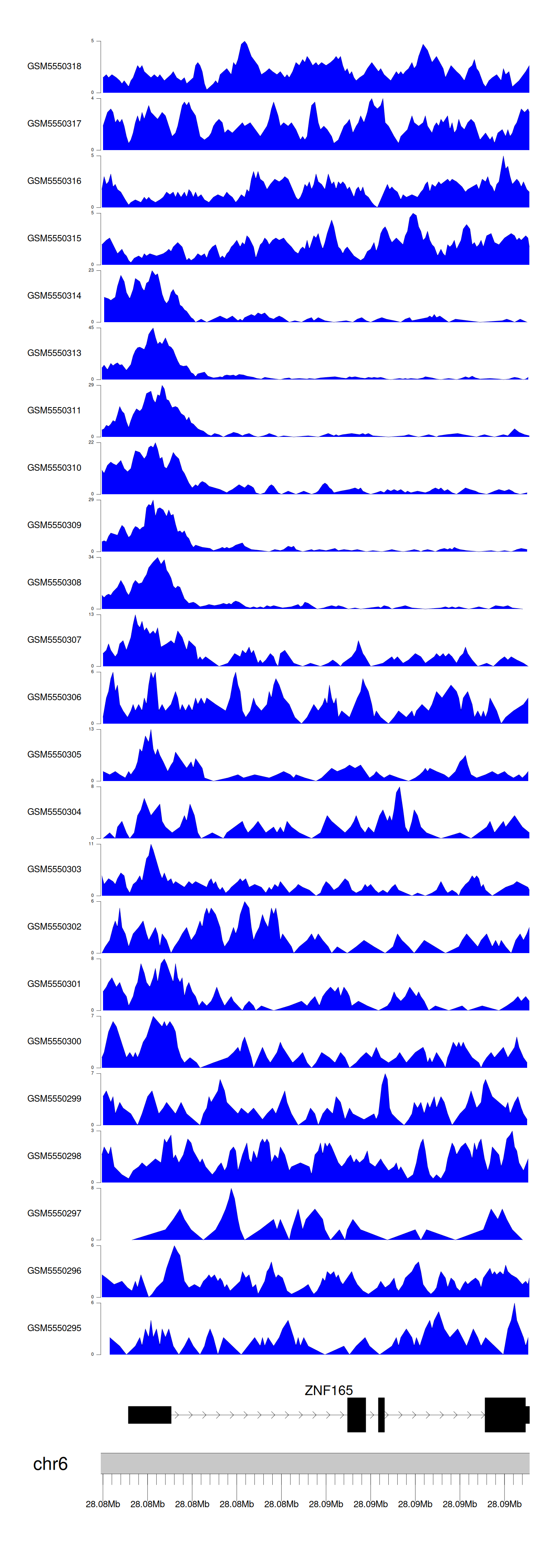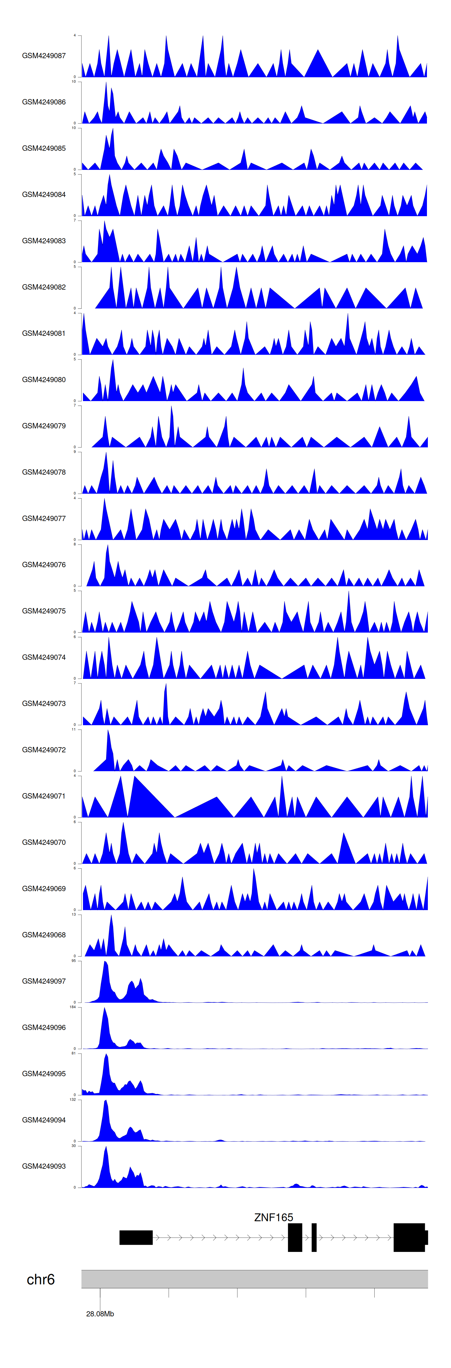 > Dataset: GSE143026 - ZNF165 peak across samples