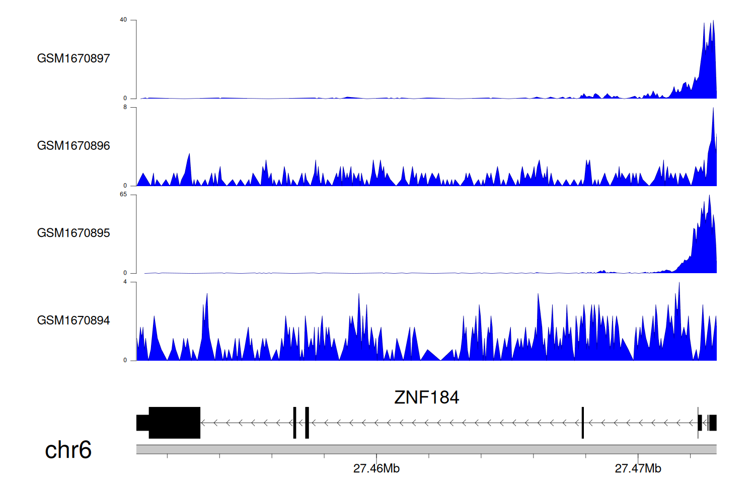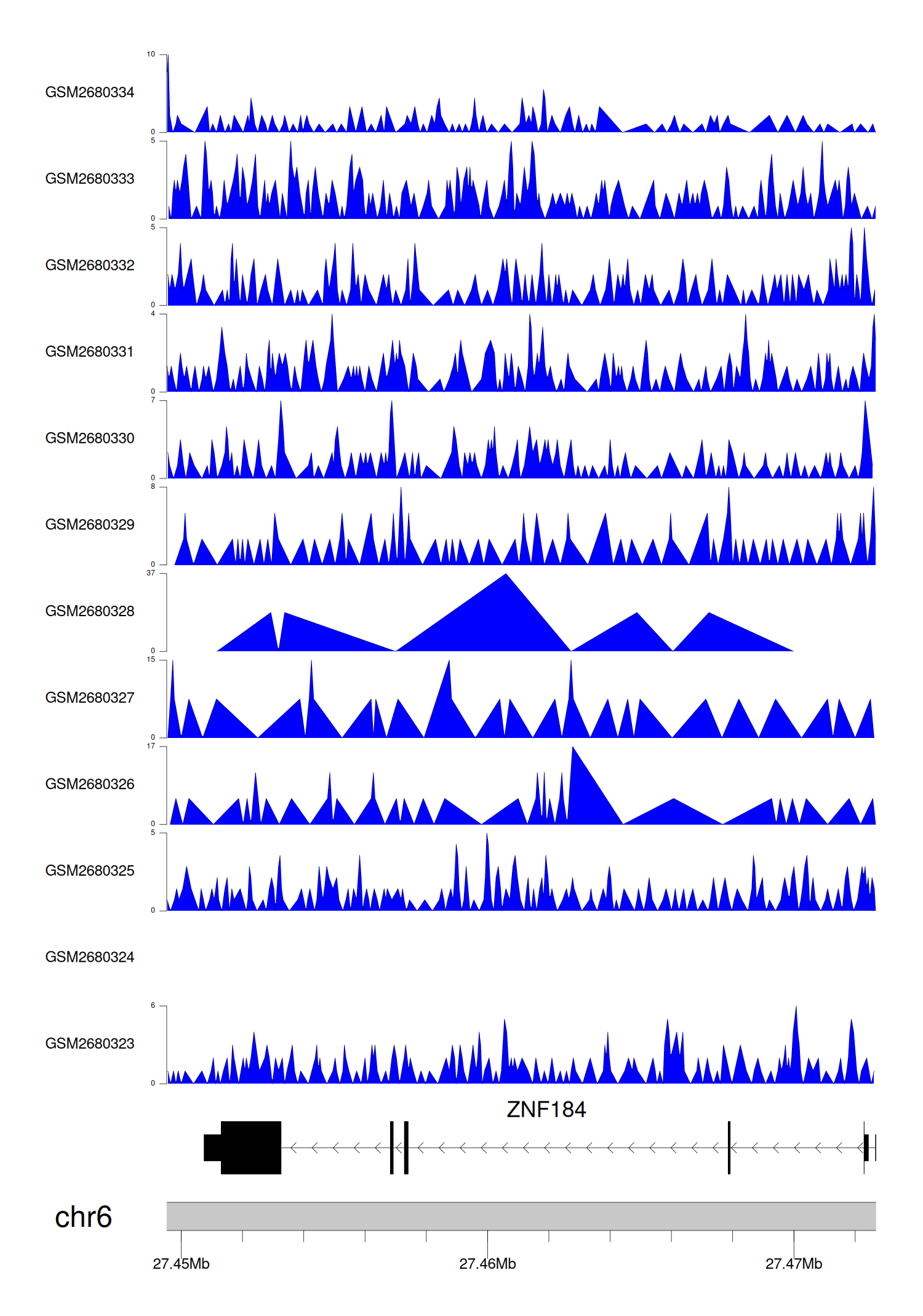 > Dataset: GSE68402 - ZNF184 peak across samples