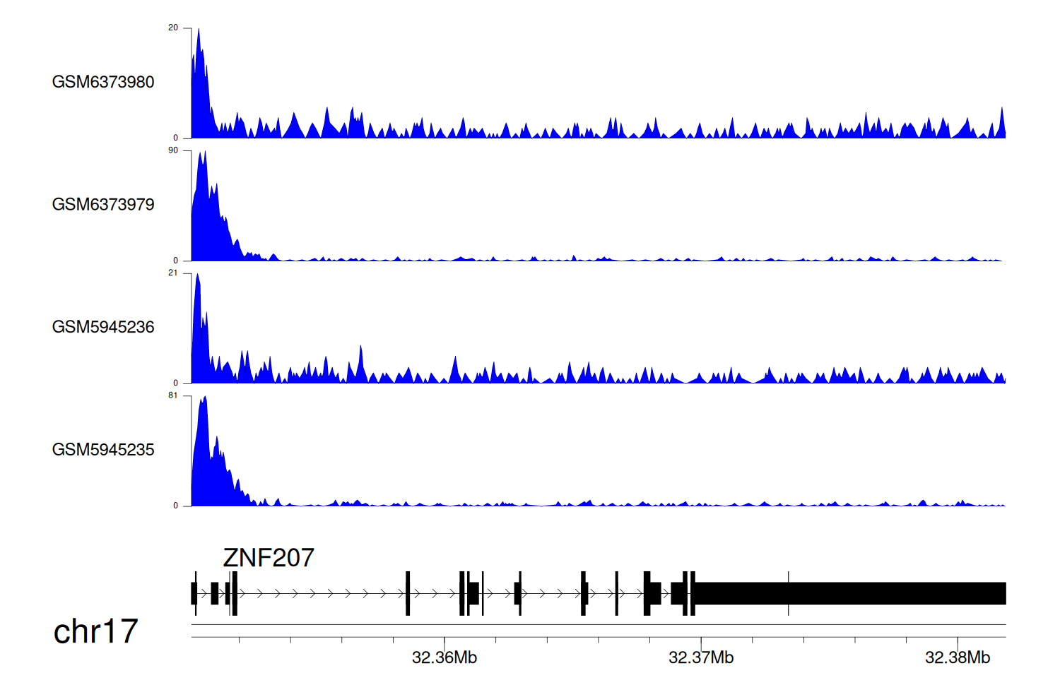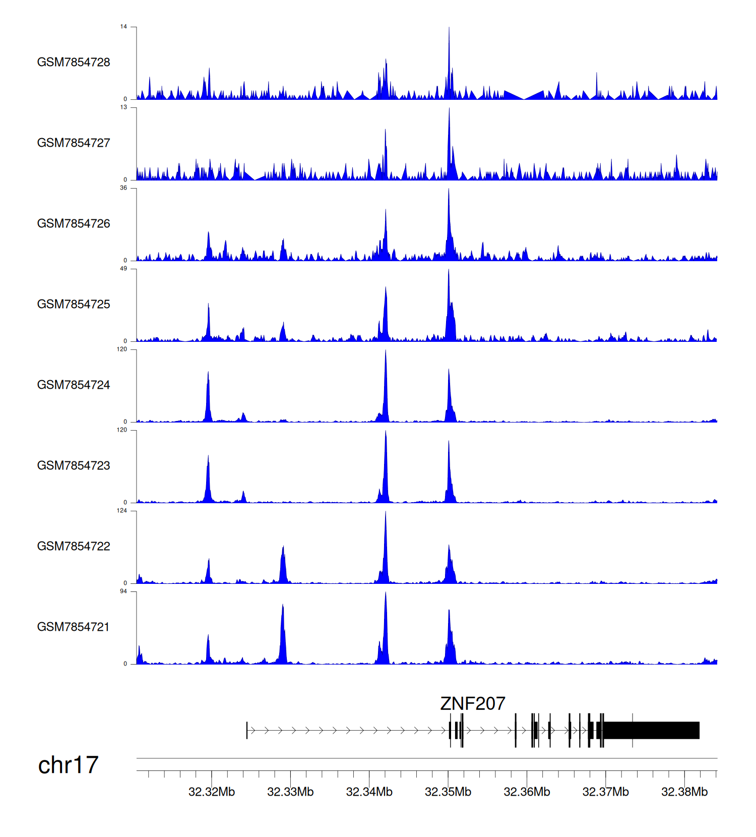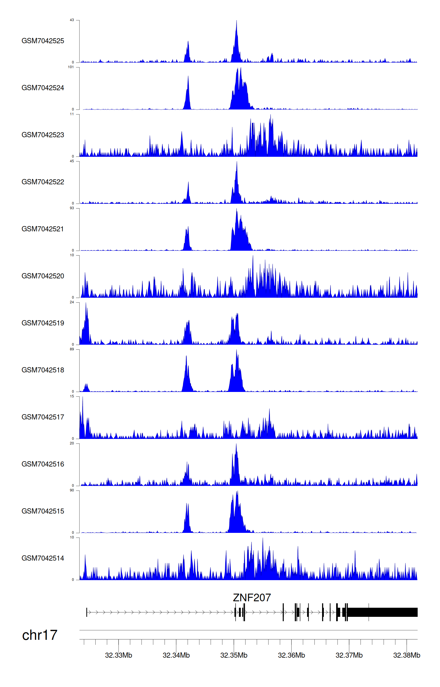 > Dataset: GSE246060 - ZNF207 peak across samples