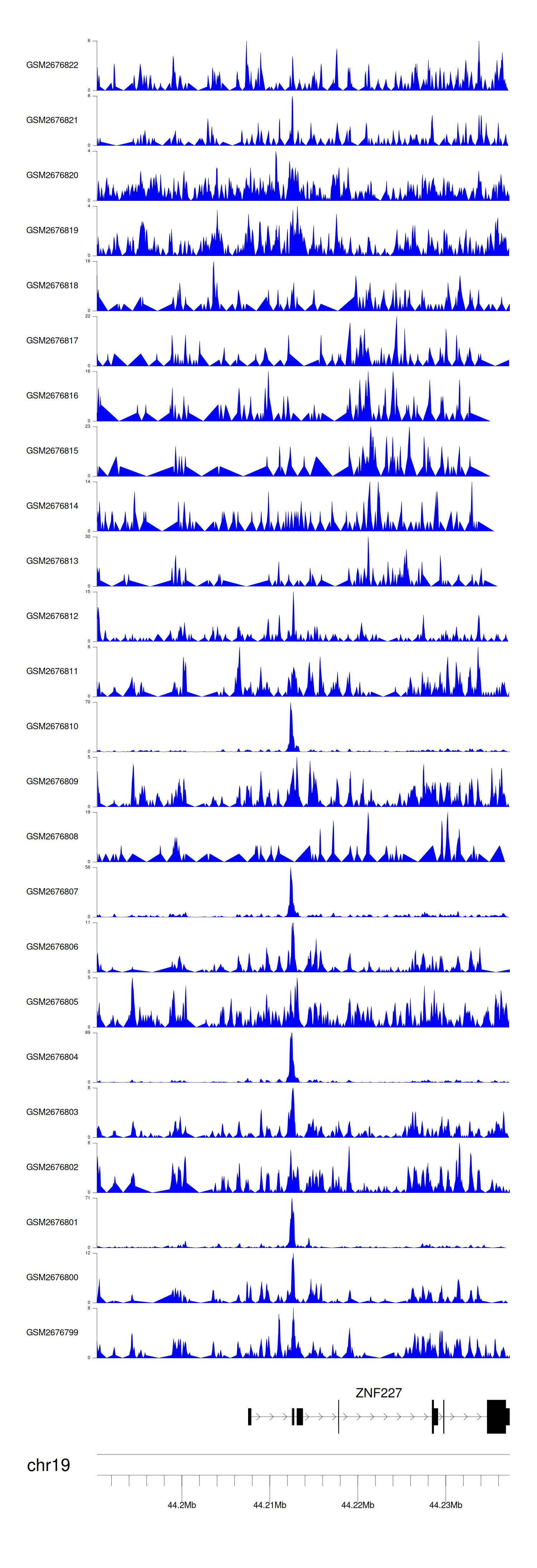 > Dataset: GSE100376 - ZNF227 peak across samples