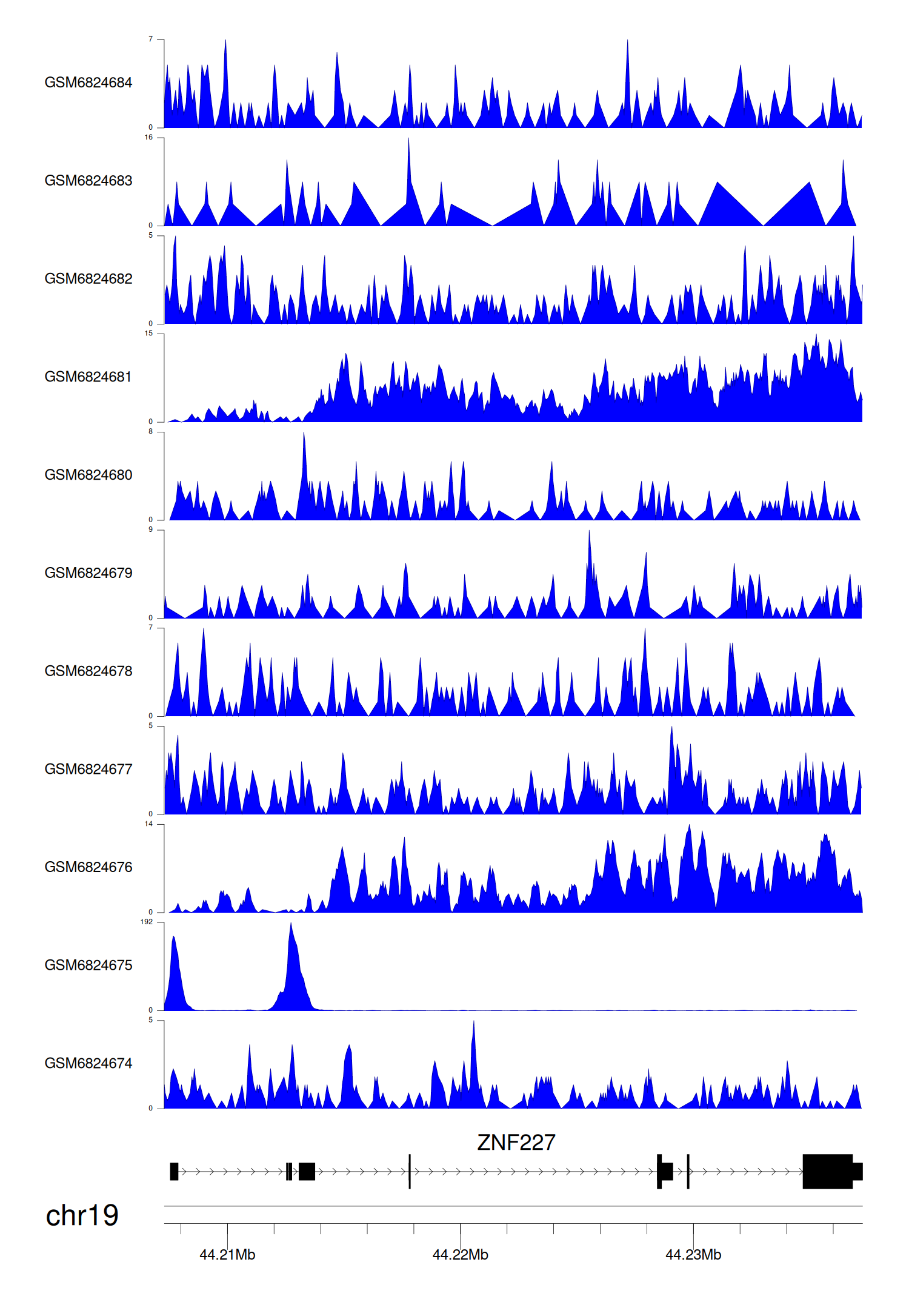 > Dataset: GSE165705 - ZNF227 peak across samples