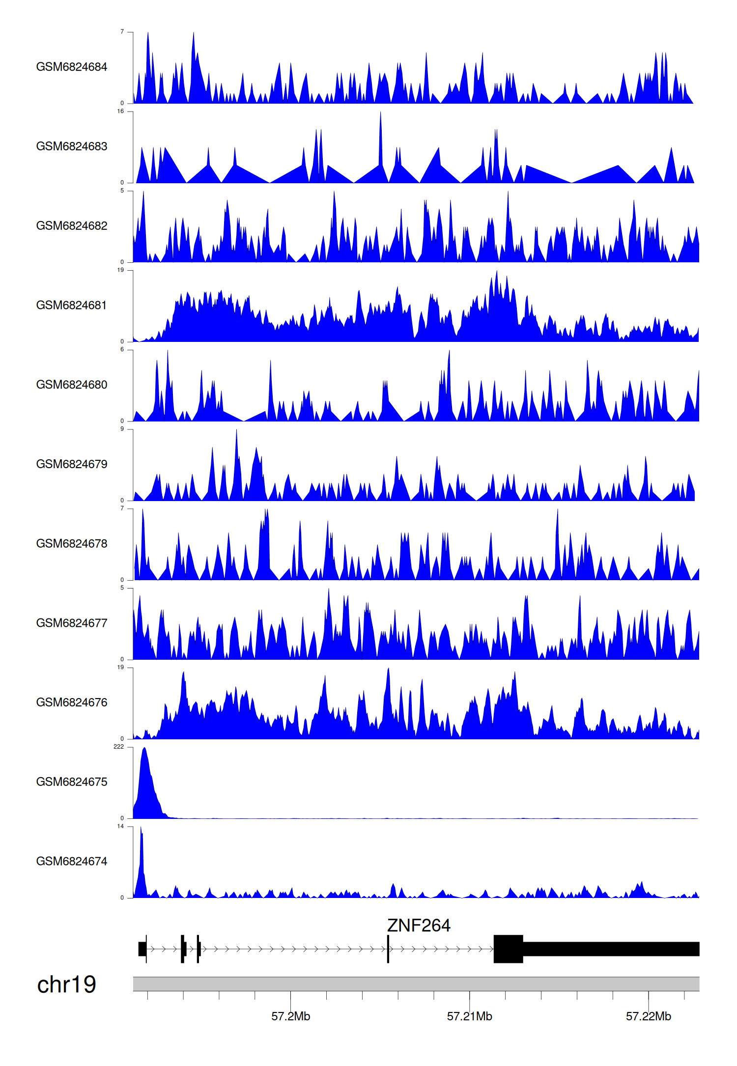> Dataset: GSE165705 - ZNF264 peak across samples