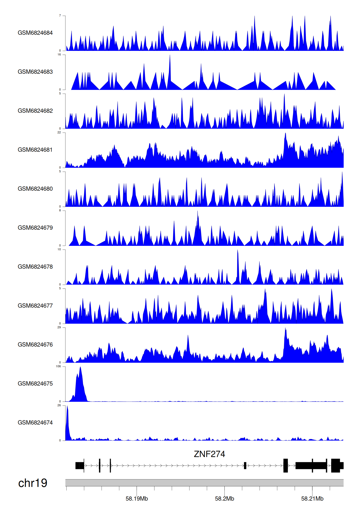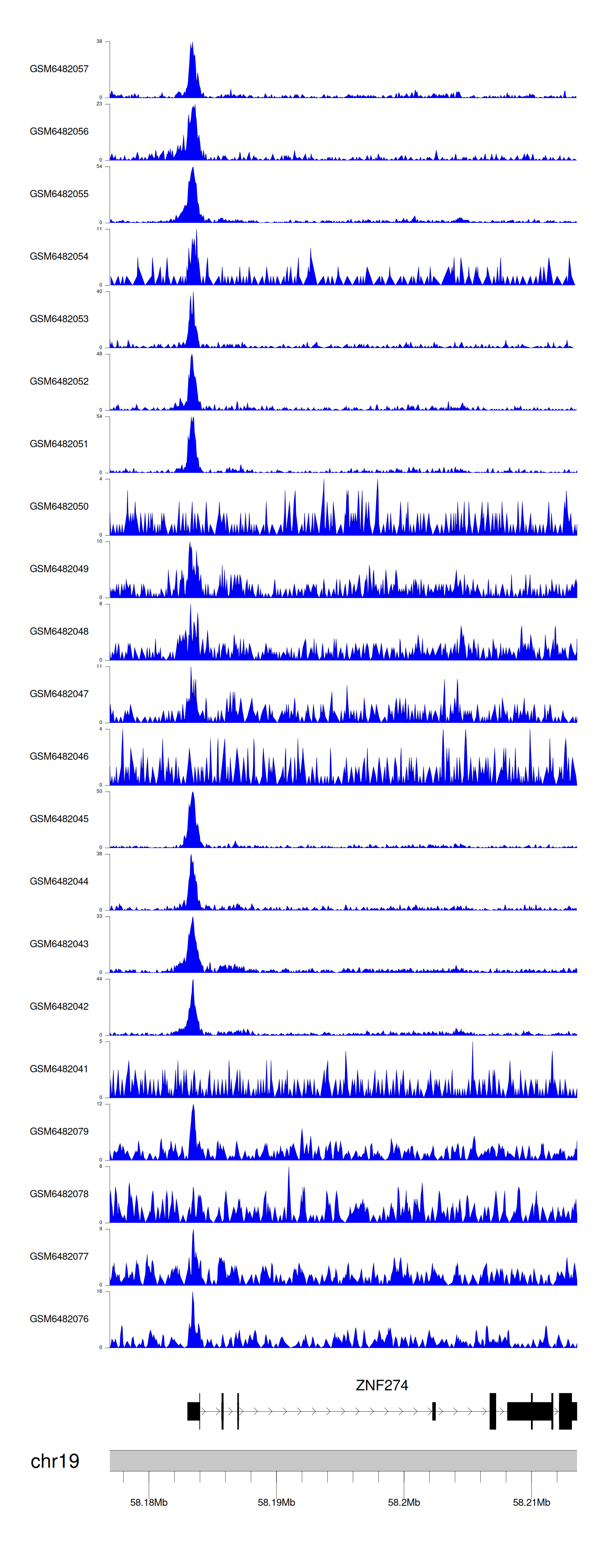 > Dataset: GSE165703 - ZNF274 peak across samples