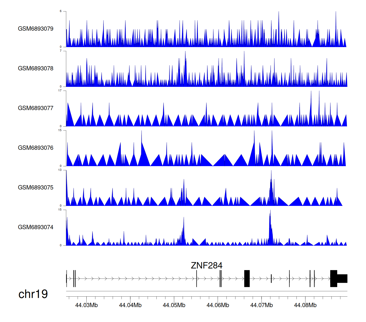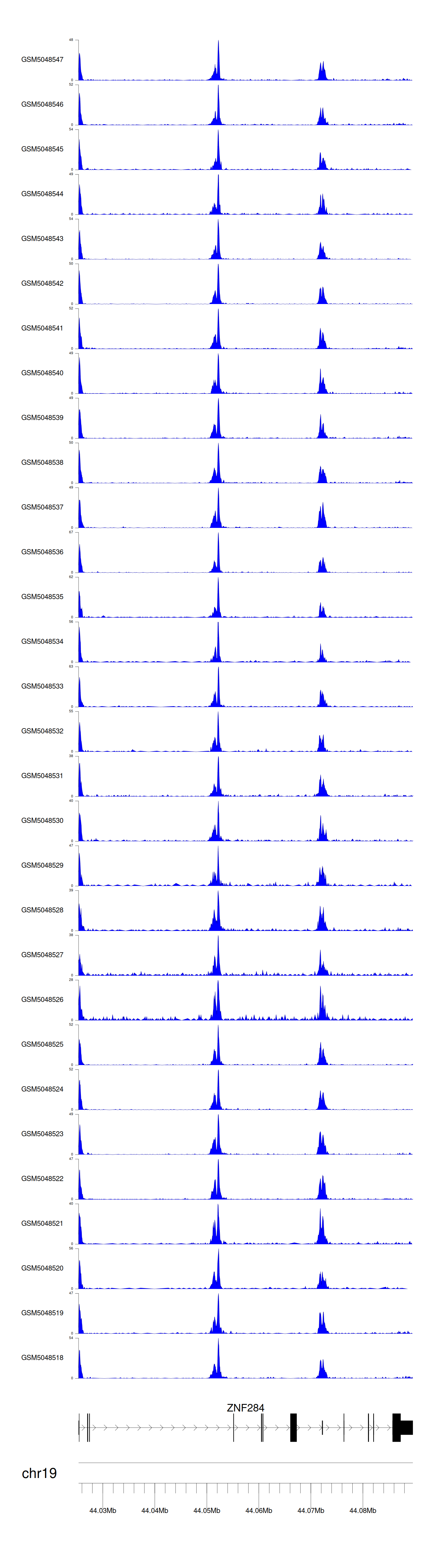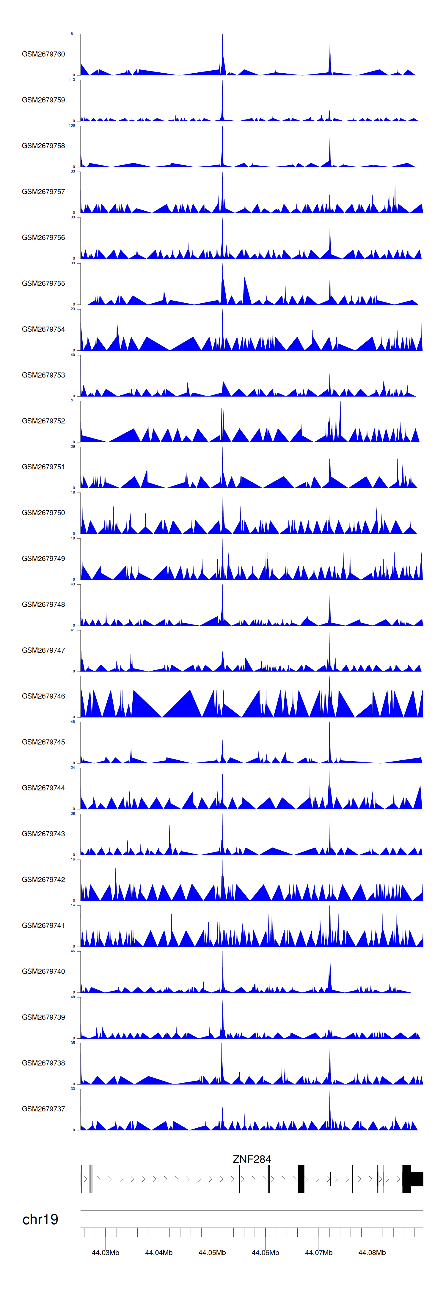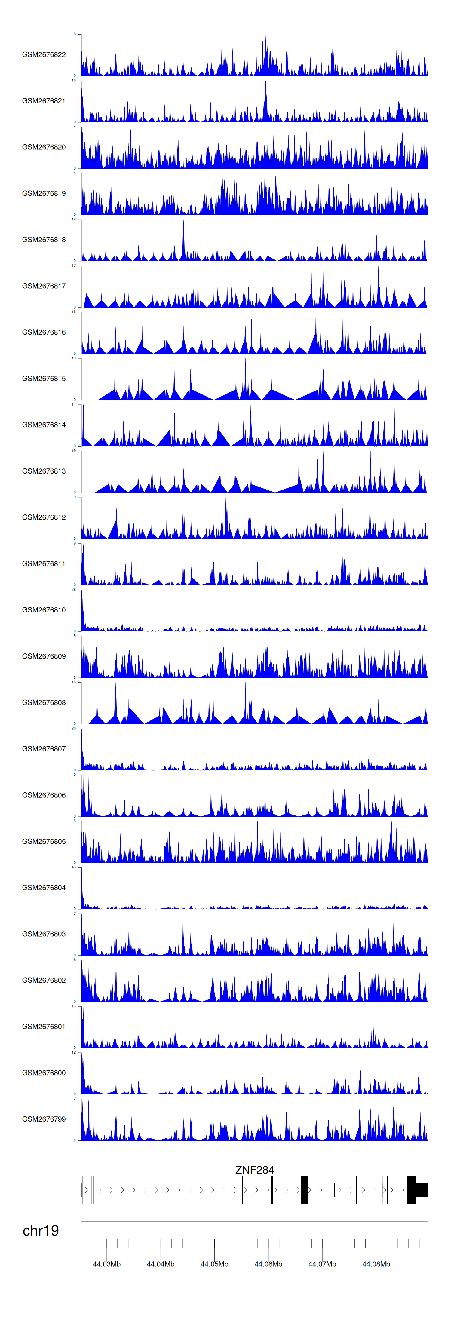 > Dataset: GSE165703 - ZNF284 peak across samples