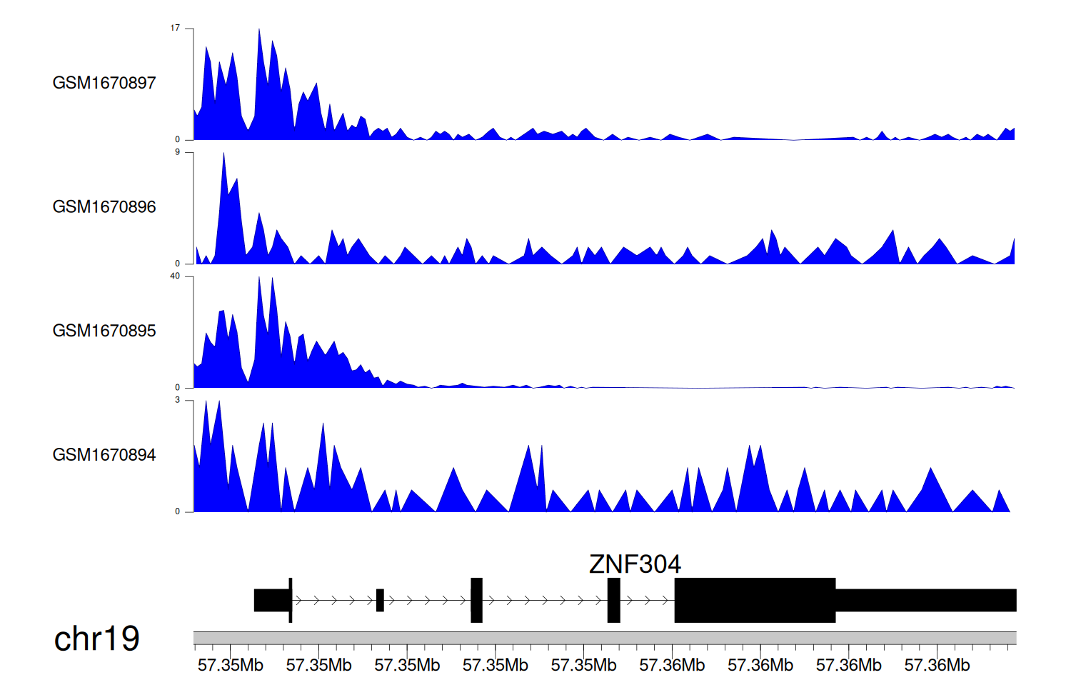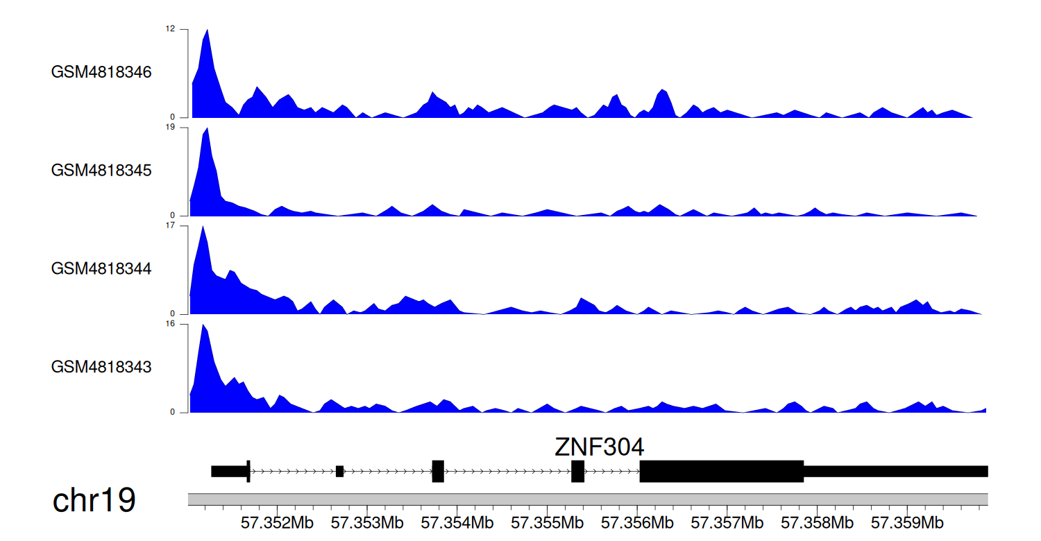 > Dataset: GSE131257 - ZNF304 peak across samples