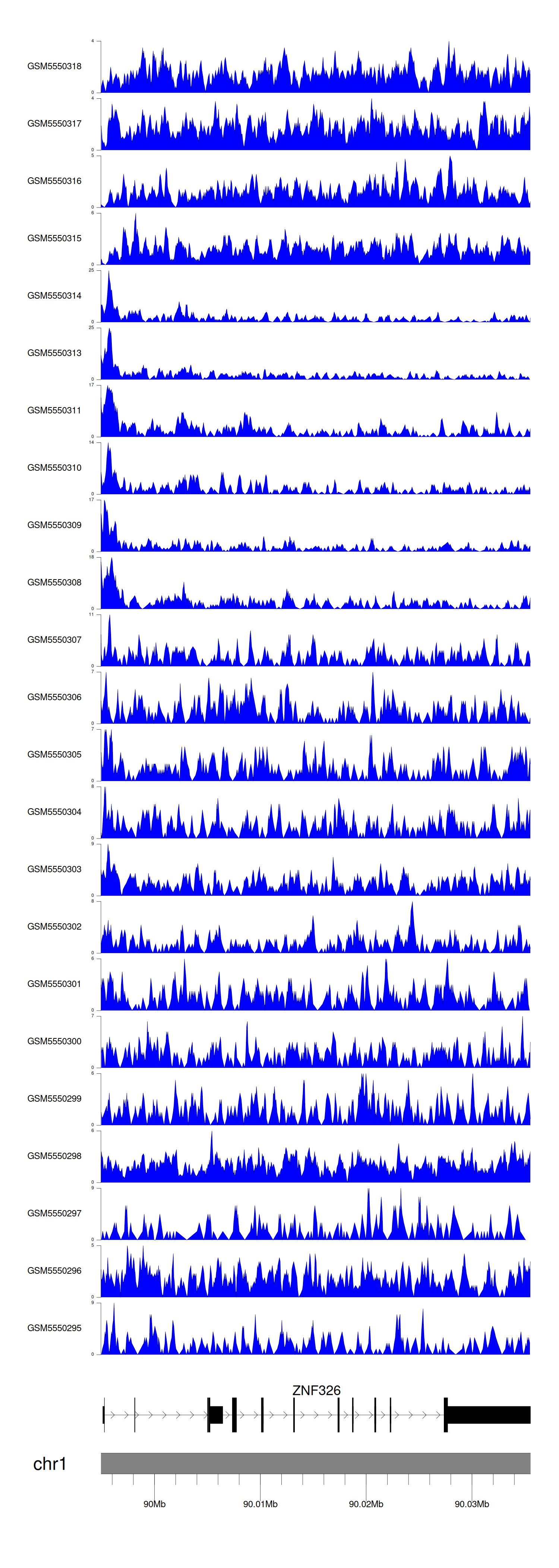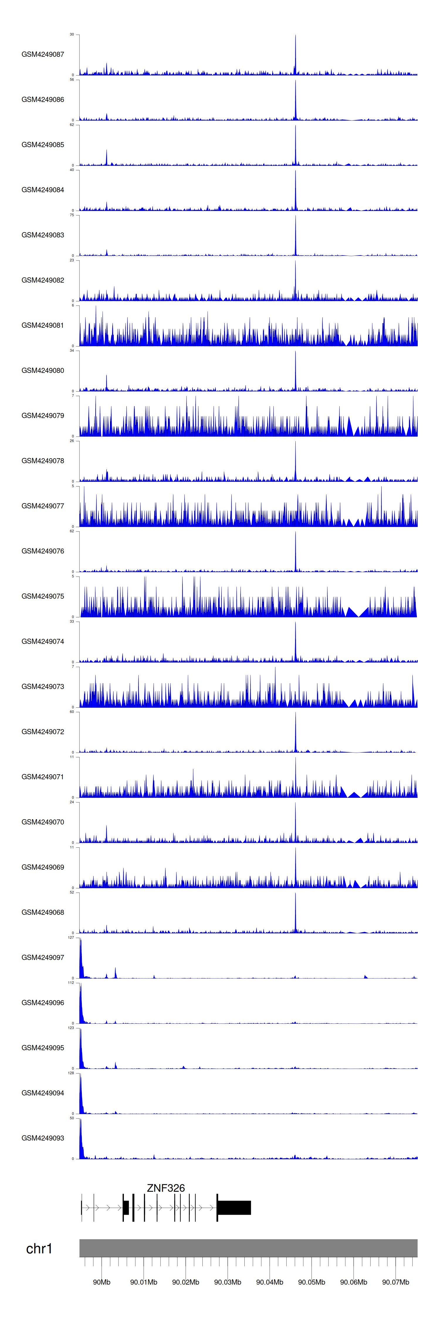 > Dataset: GSE143026 - ZNF326 peak across samples