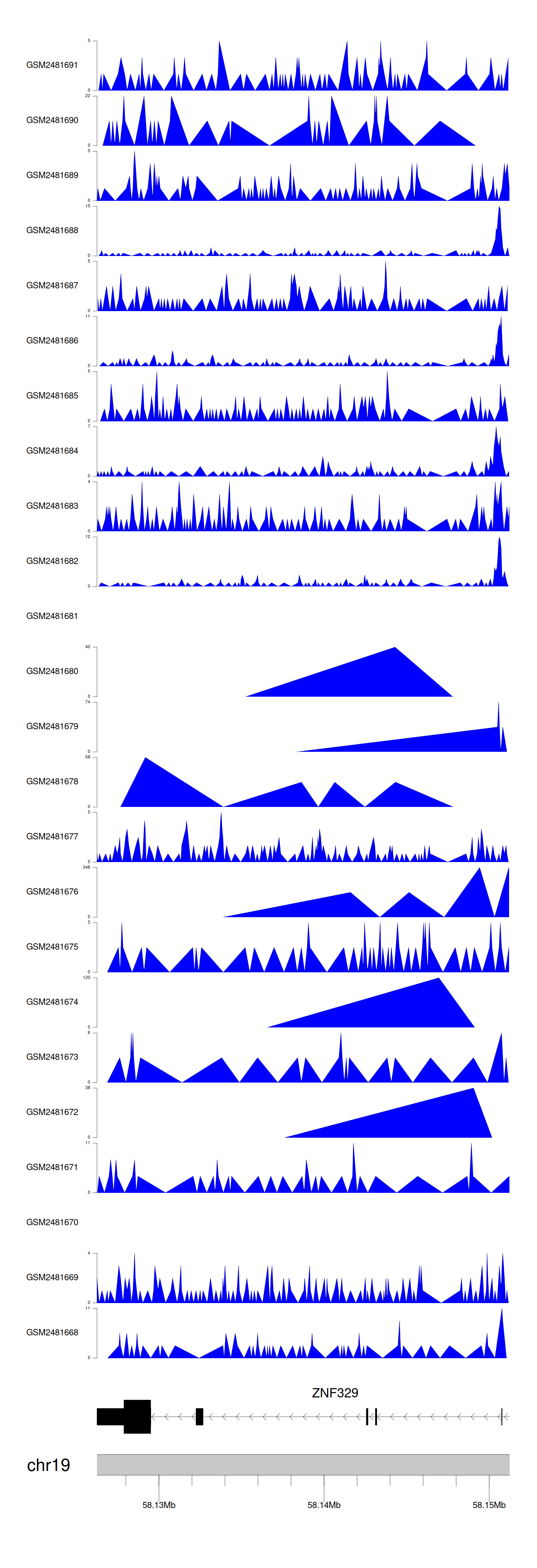 > Dataset: GSE94732 - ZNF329 peak across samples