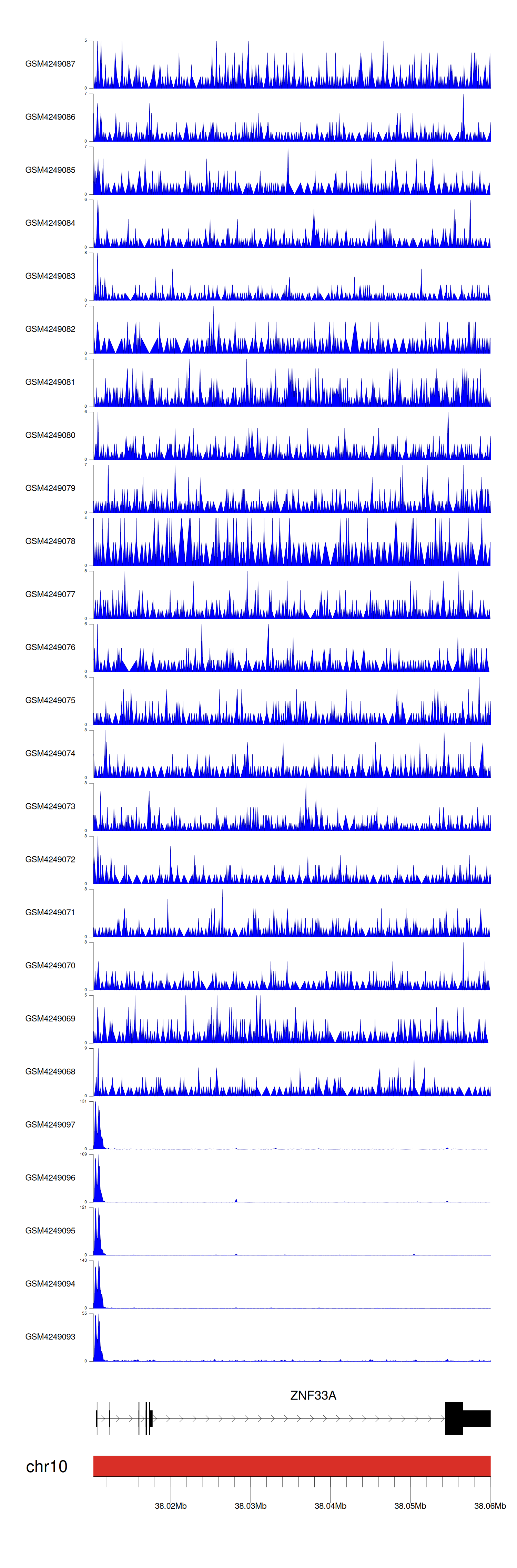 > Dataset: GSE143026 - ZNF33A peak across samples