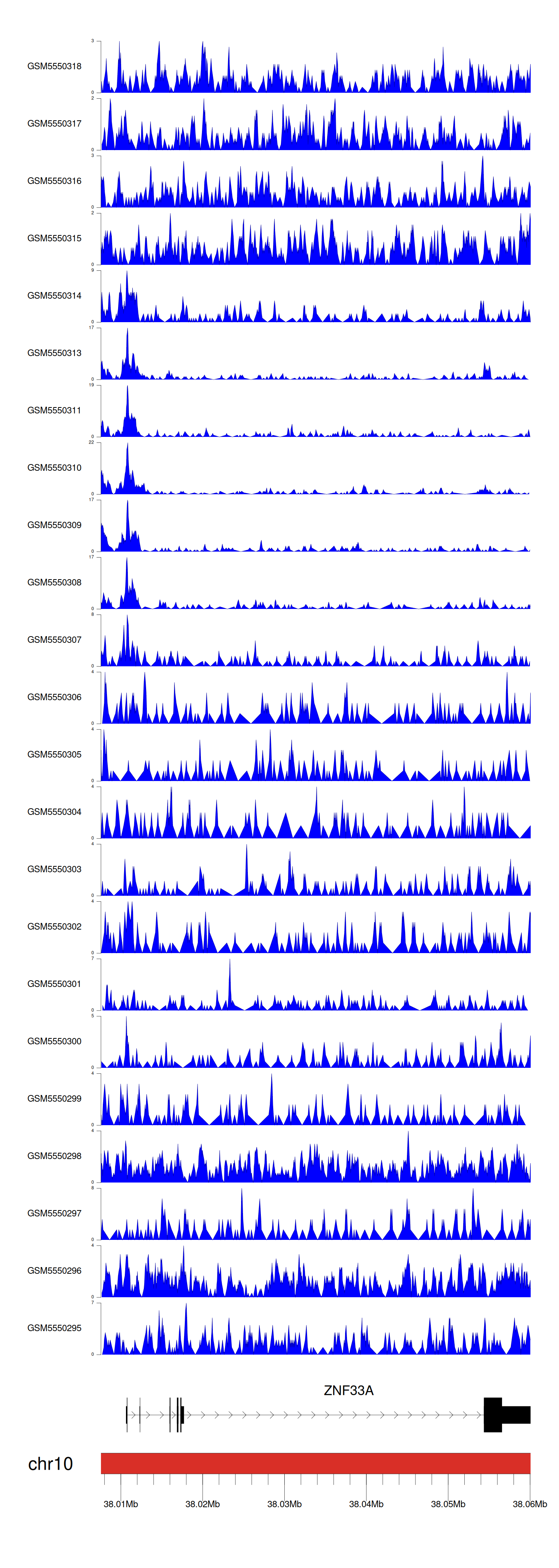 > Dataset: GSE183048 - ZNF33A peak across samples
