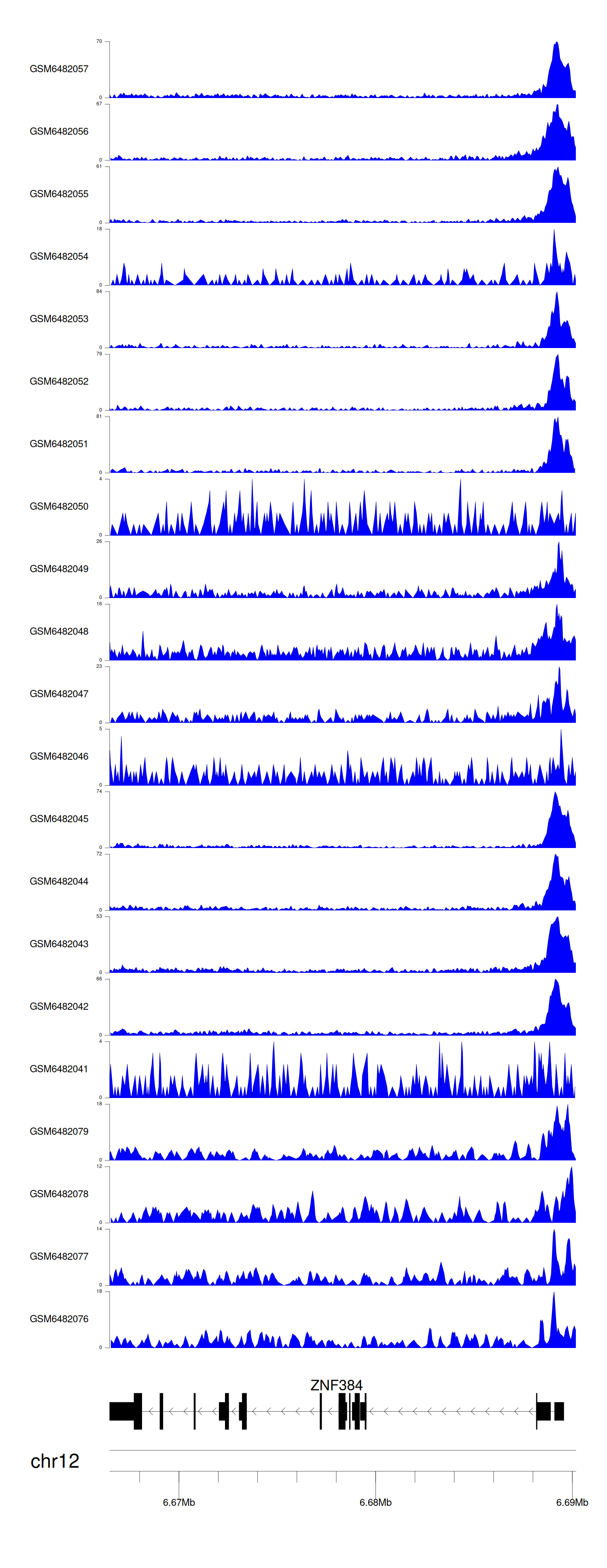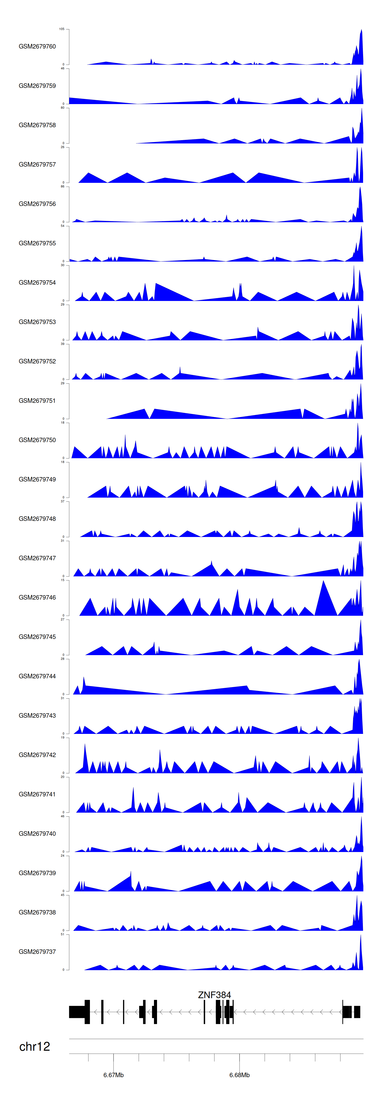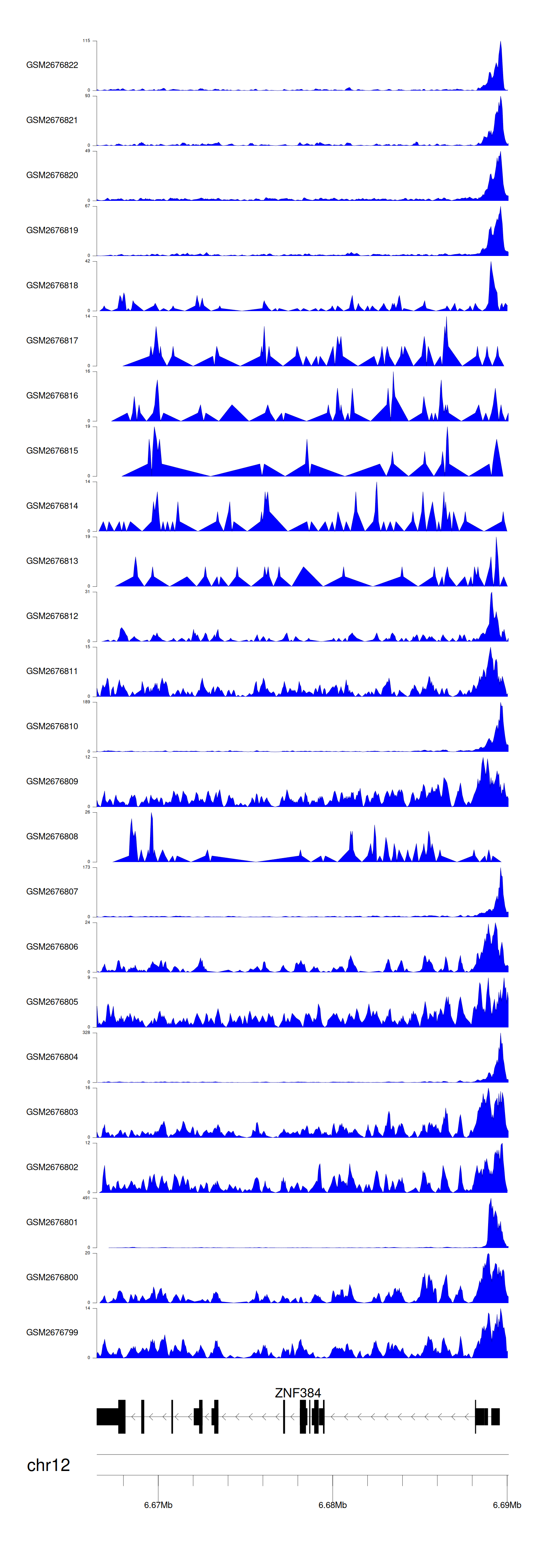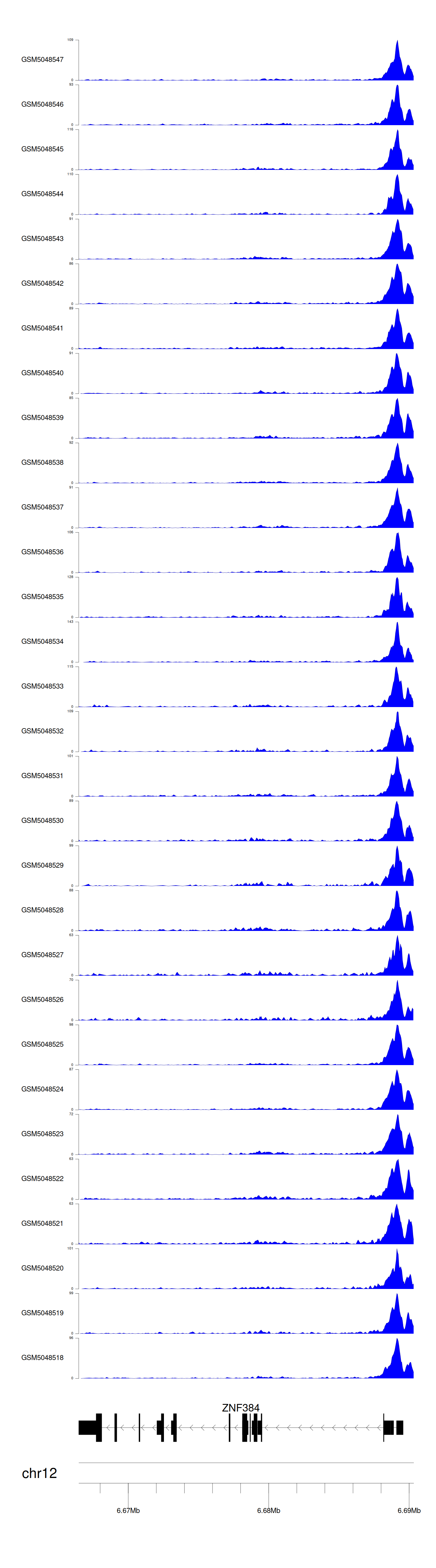 > Dataset: GSE165703 - ZNF384 peak across samples