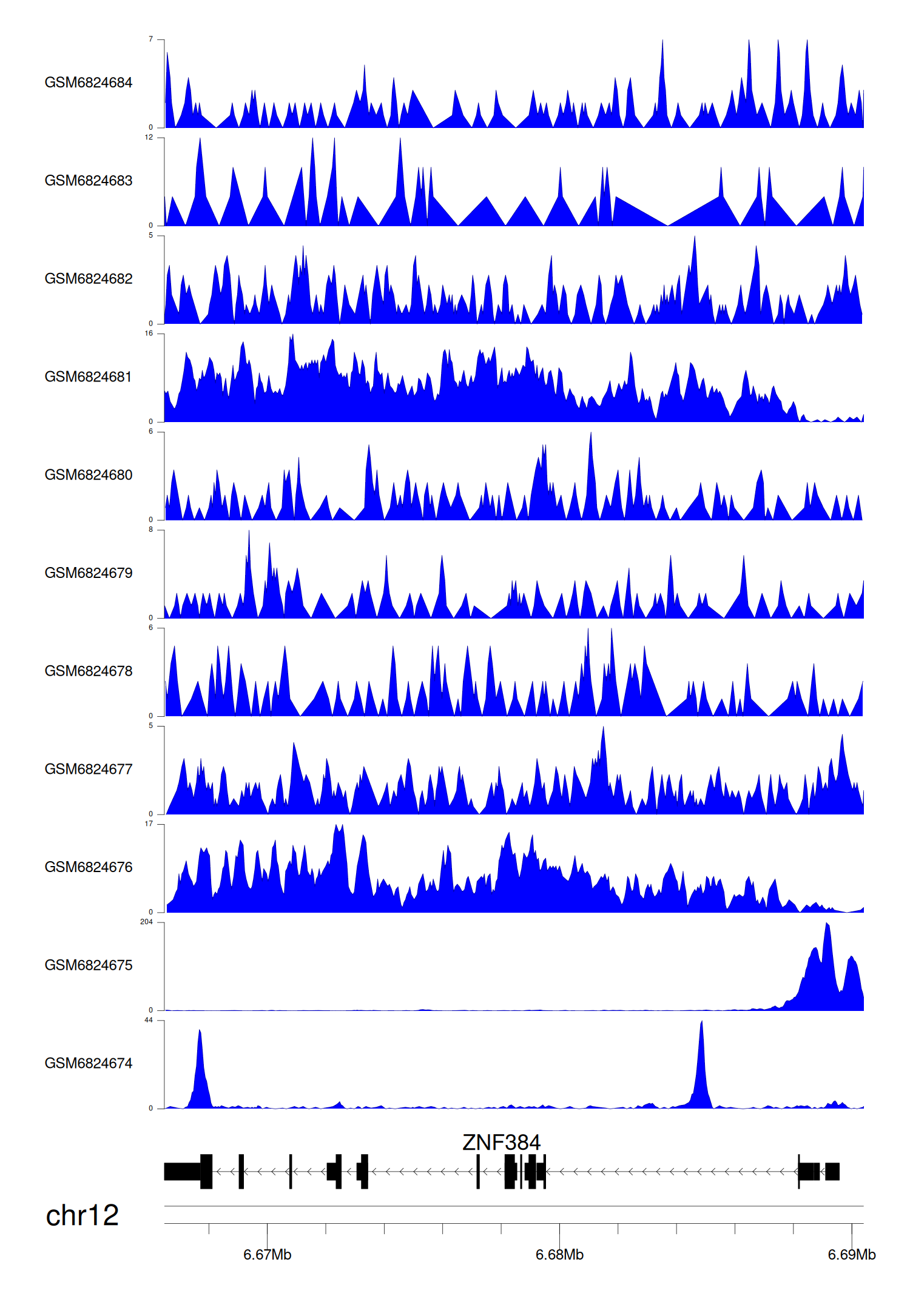 > Dataset: GSE165705 - ZNF384 peak across samples