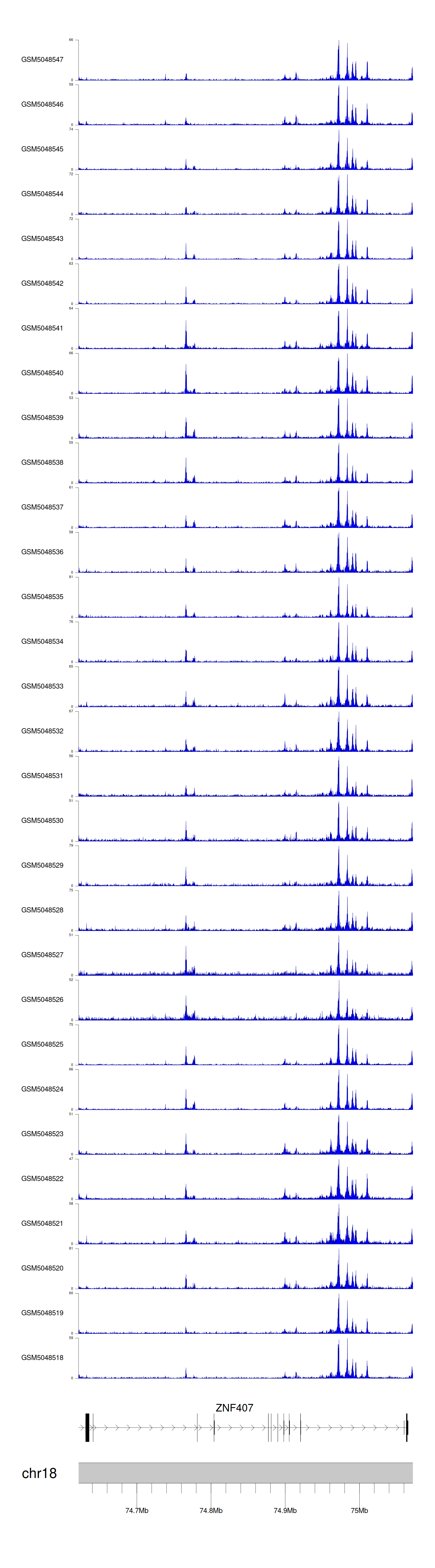 > Dataset: GSE30738 - ZNF407 peak across samples